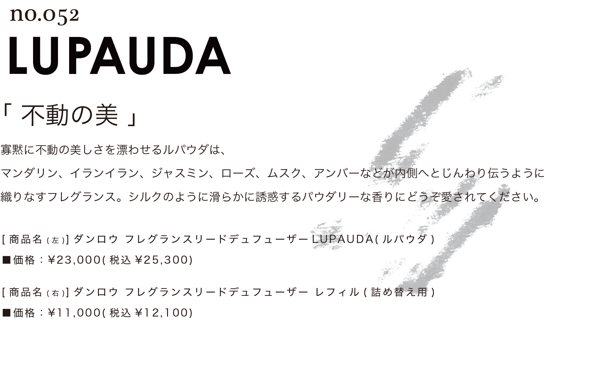独自のフレグランスや、造形的にも美しさ際立つプロダクトを視覚、聴覚、嗅覚を通し、どうぞご体験ください。