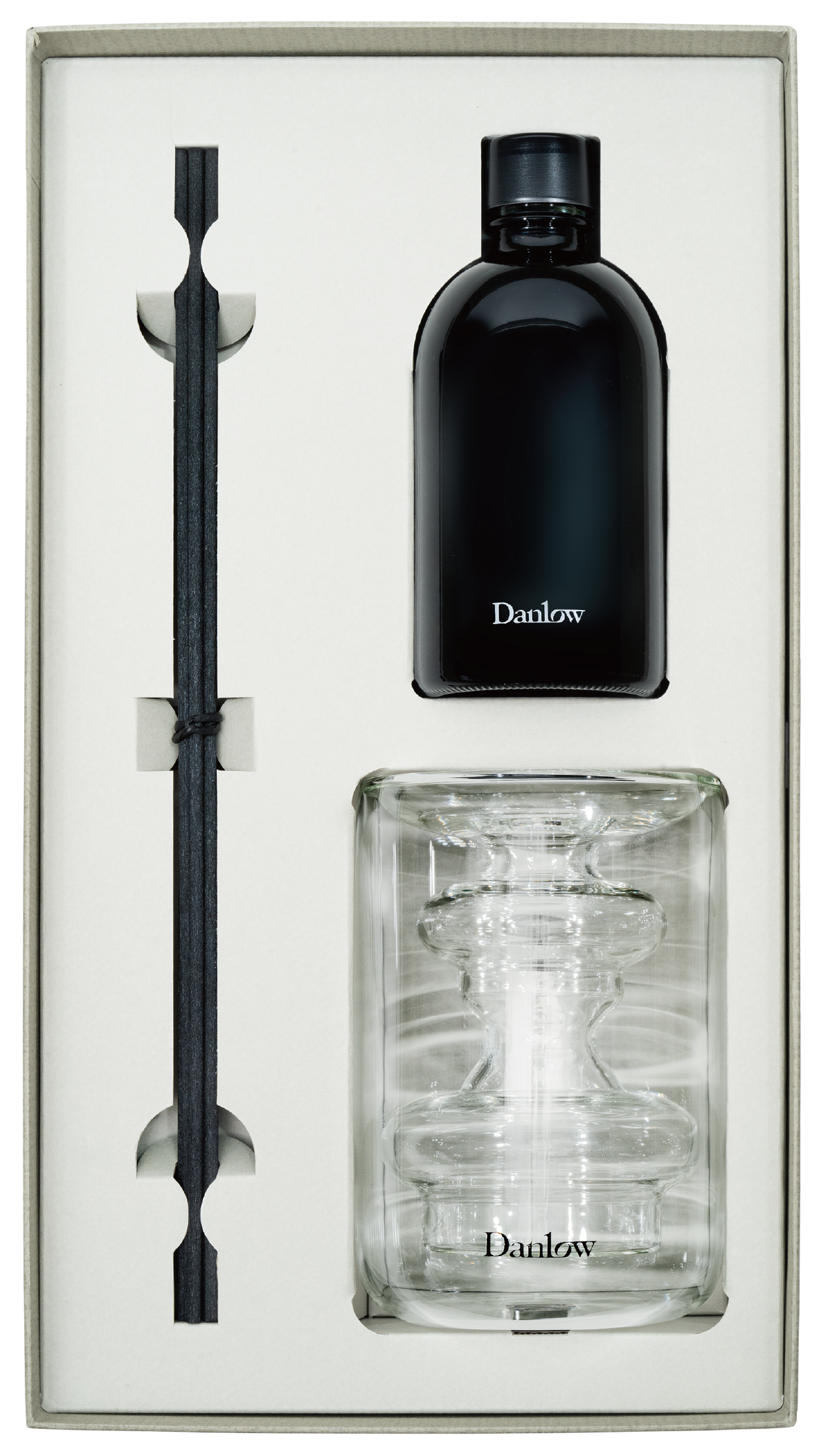 ディフューザーグラスとフレグランスボトル、リードがセットになったダンロウフレグランスリードディフューザー。二層に造形された象徴的なグラスは、柔らかく差し込む日差しや照明により、広がる芳醇な香りと共に様々な表情を魅せます。