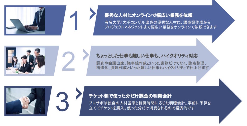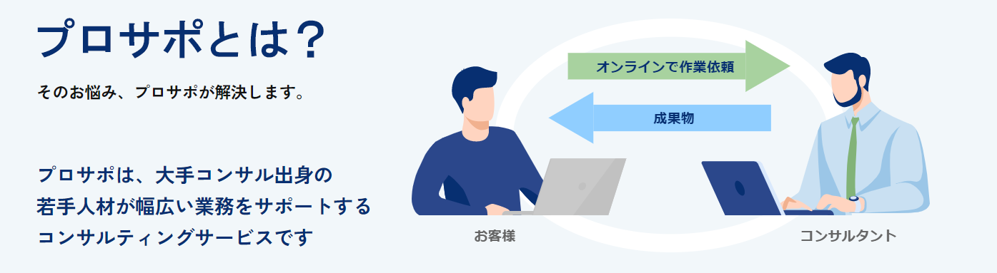 使いやすい優秀な若手コンサルタントに、難しい仕事や急なプロジェクトでも、オンラインで手軽に依頼出来るビジネス秘書サービス「プロサポ」を正式リリースします