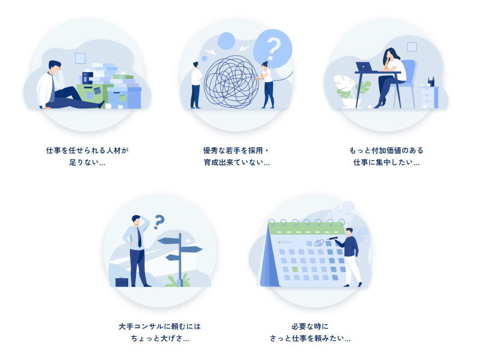 若手であっても大手コンサルティングファームで経験を積んだ人材のため、論点整理や構造化、資料作成など難易度の高い仕事も高品質に対応可能です。