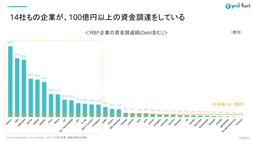 RBFはサービス提供にあたり、原資となる資金が必要となります。そのため、3桁億円を超える大型の資金調達が相次いでいます。大きな金額をいかに速く調達できるかが、競争優位性の1つとなりそうです。