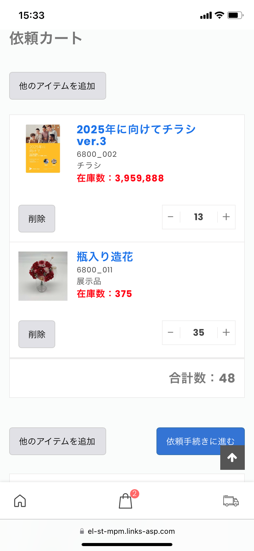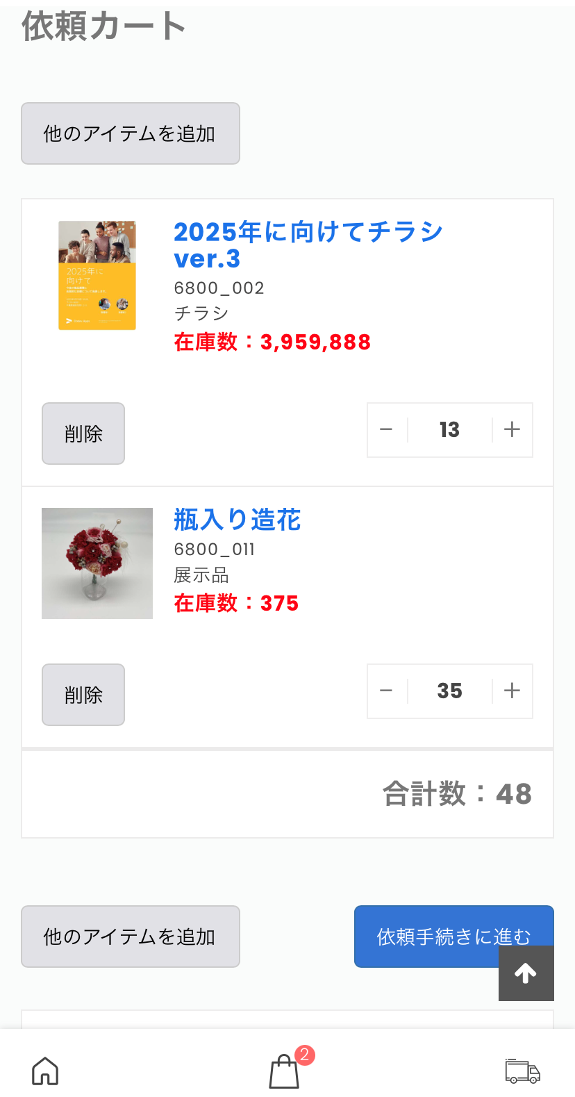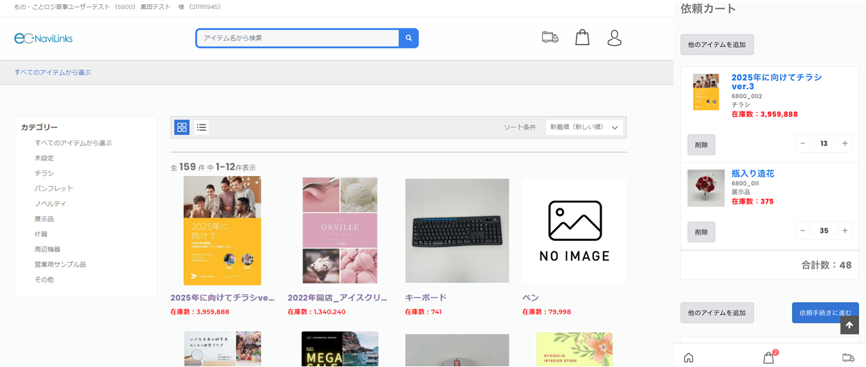 - 各拠点からの追加発送依頼もWEBで簡単に