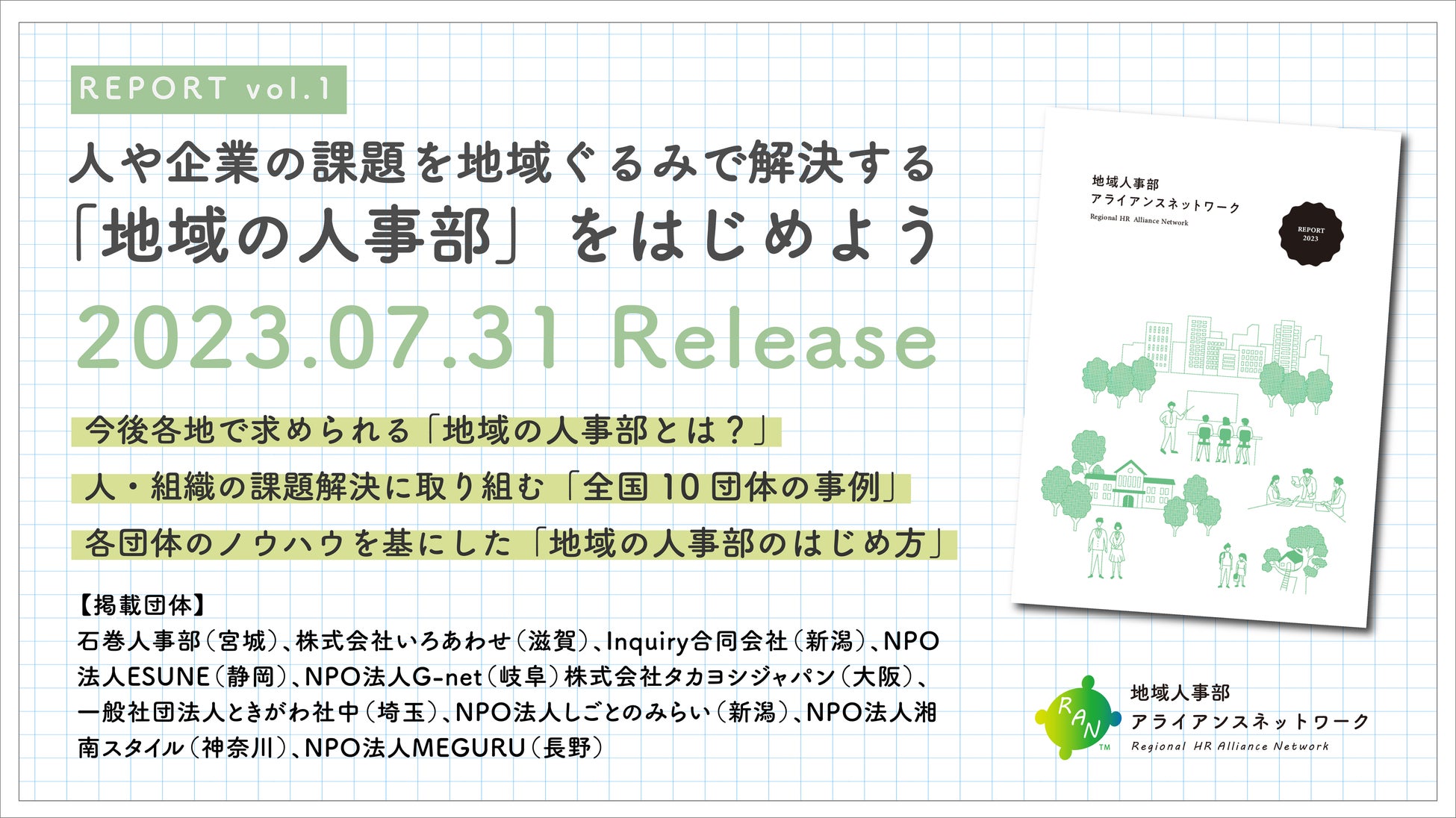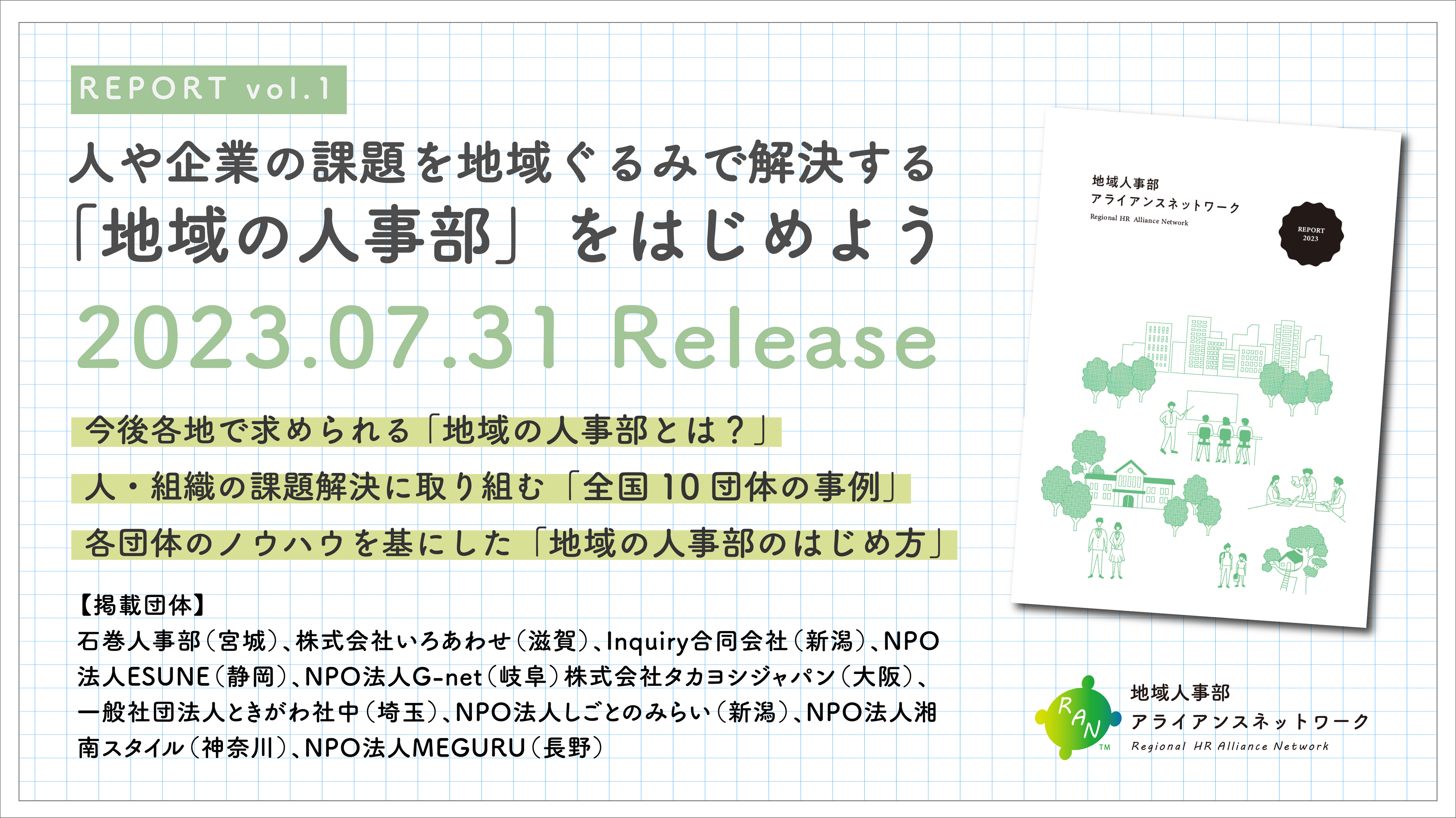 「地域人事部アライアンスネットワーク」の1年間の活動成果をまとめたレポートを発行。vol.1は地域の人事部の活動を後押しするナレッジを集約したスタートアップガイドです。