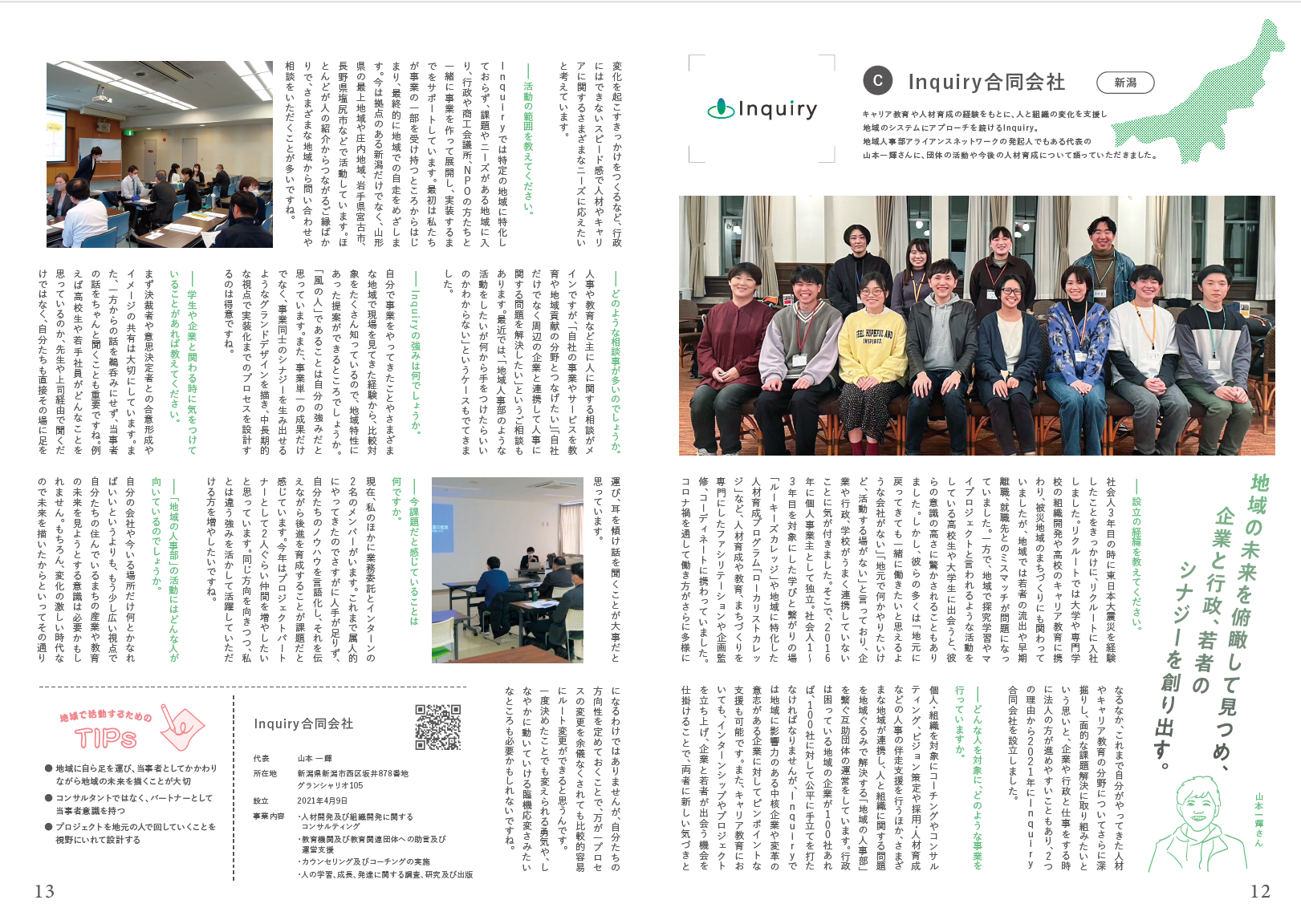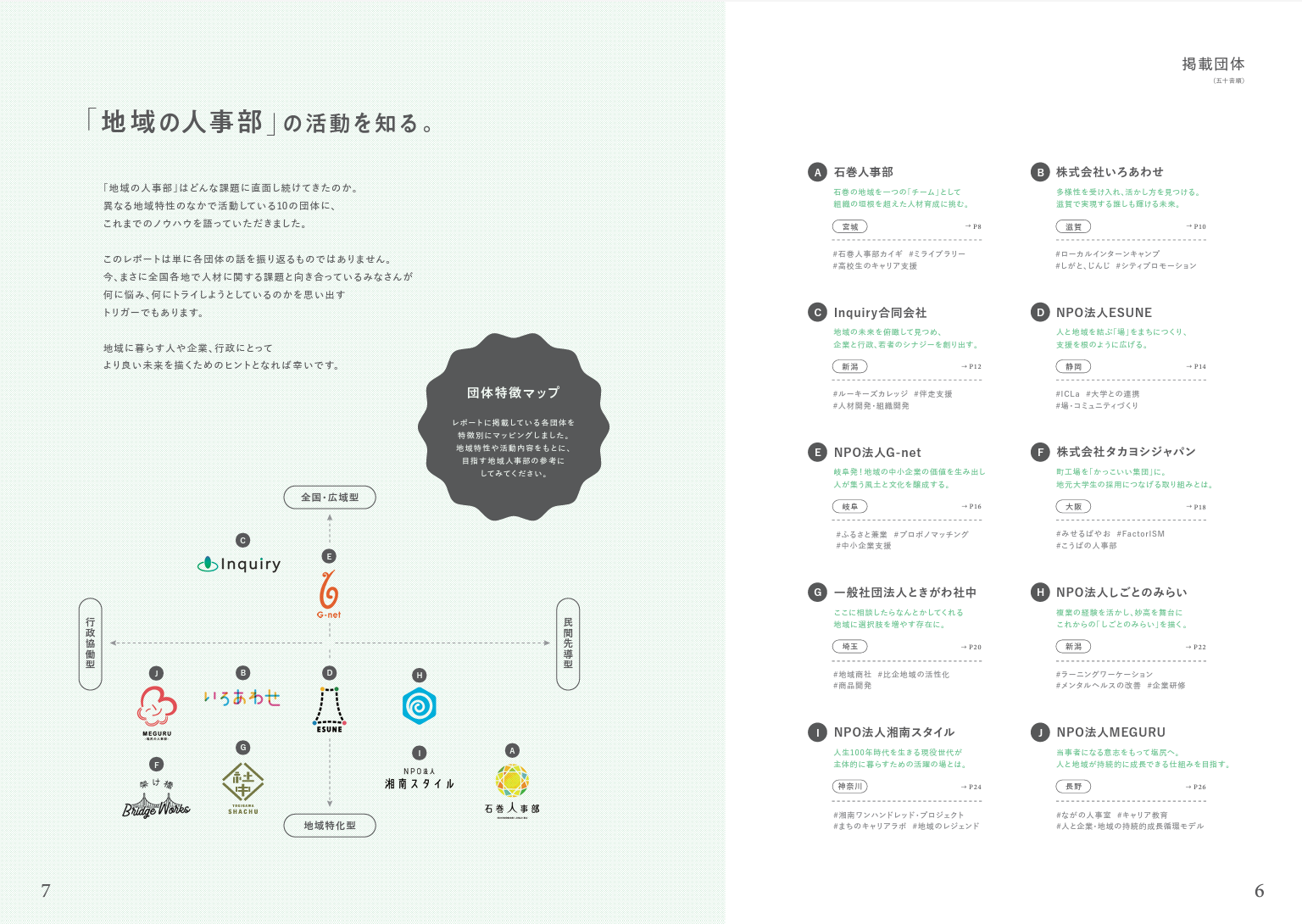 取材協力:石巻人事部(宮城)、株式会社いろあわせ(滋賀)、Inquiry合同会社(新潟)、NPO法人ESUNE(静岡)、NPO法人G-net(岐阜)、株式会社タカヨシジャパン(大阪)、一般社団法人ときがわ社中(埼玉)、NPO法人しごとのみらい(新潟)、NPO法人湘南スタイル(神奈川)、NPO法人MEGURU(長野)