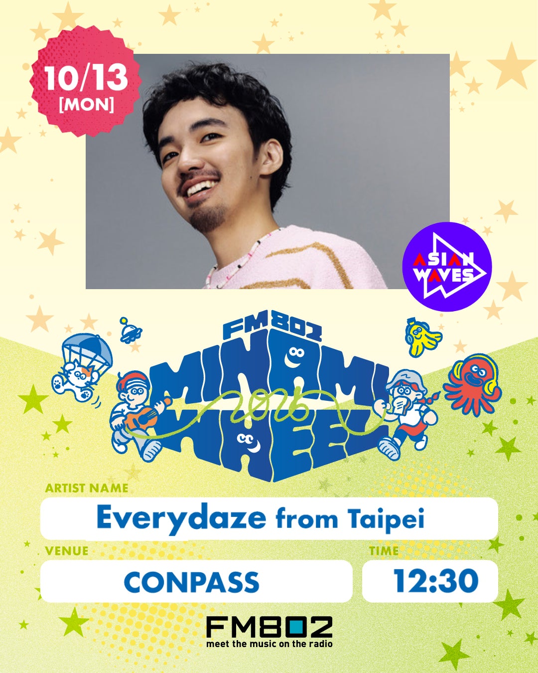 台湾を拠点に活動するシンガーソングライター兼プロデューサー Everydaze(エブリデイズ) が、10月13日(月・祝)に大阪で開催される大型ライブ・ショーケースイベント 「MINAMI WHEEL 2025」 に出演する。同イベントは関西を代表する音楽フェスティバルの一つで、Everydazeにとっては初の海外公演、そして初の日本公演となる。