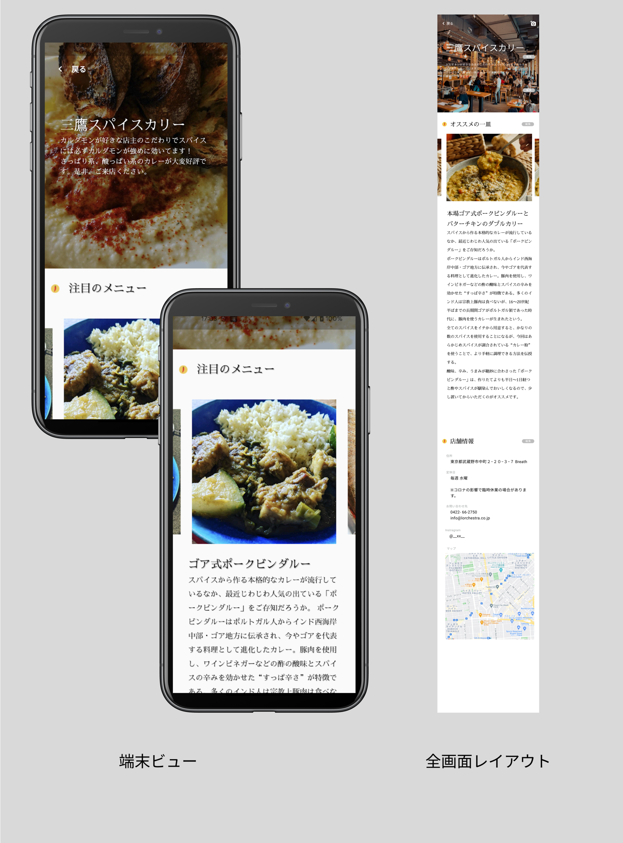 お店紹介は雑誌のようなデザインで読みやすく、入力項目は必要最低限