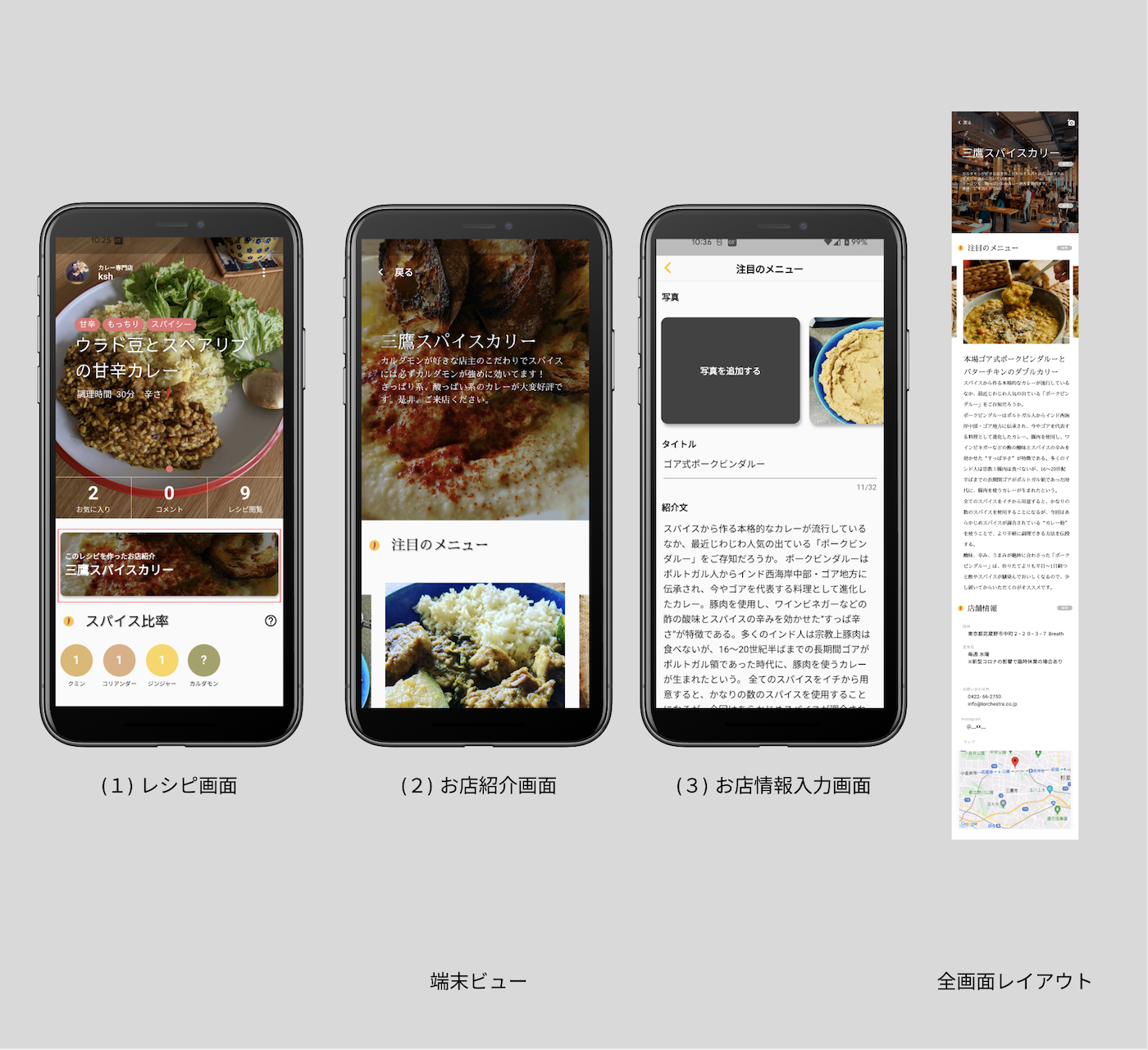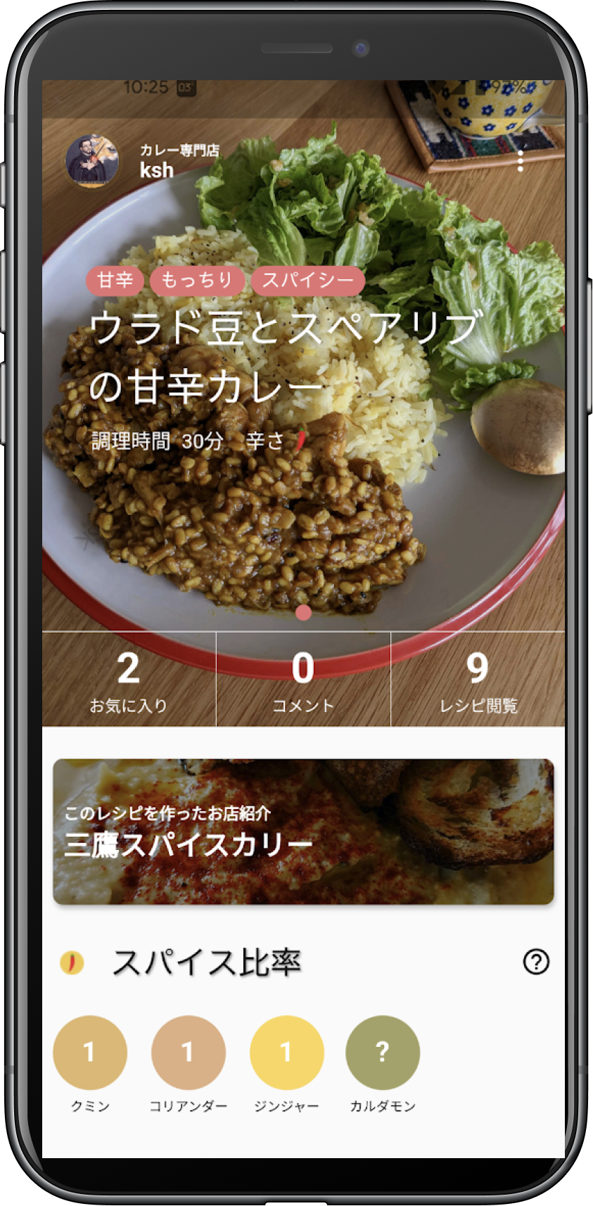 カレーを中心とした本格スパイス料理のレシピ共有・検索・管理アプリです。