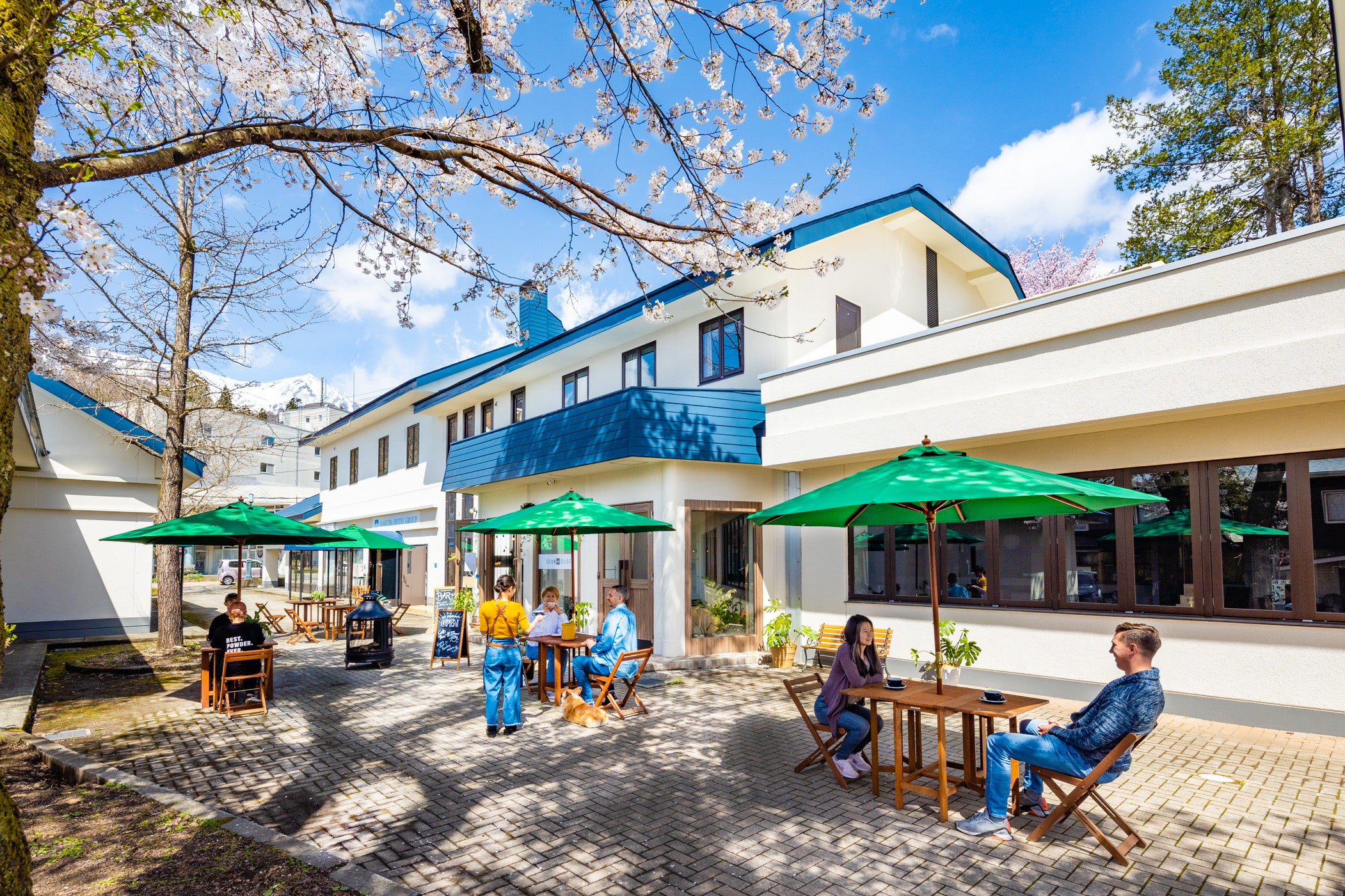 天気の良い日には八方の山が綺麗に見えて、テラス席からの景色はまるで外国にいるような雰囲気を味わえます。