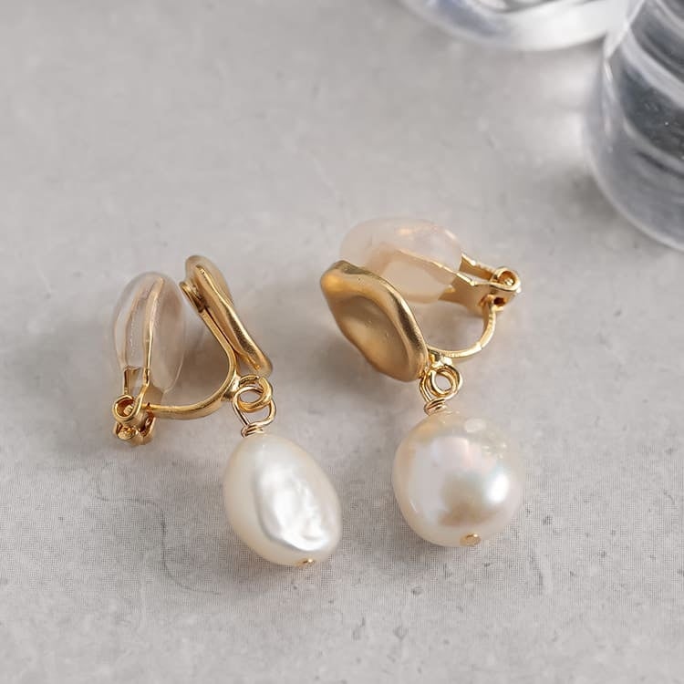 - ニュアンスプレート×1粒淡水パールイヤリング