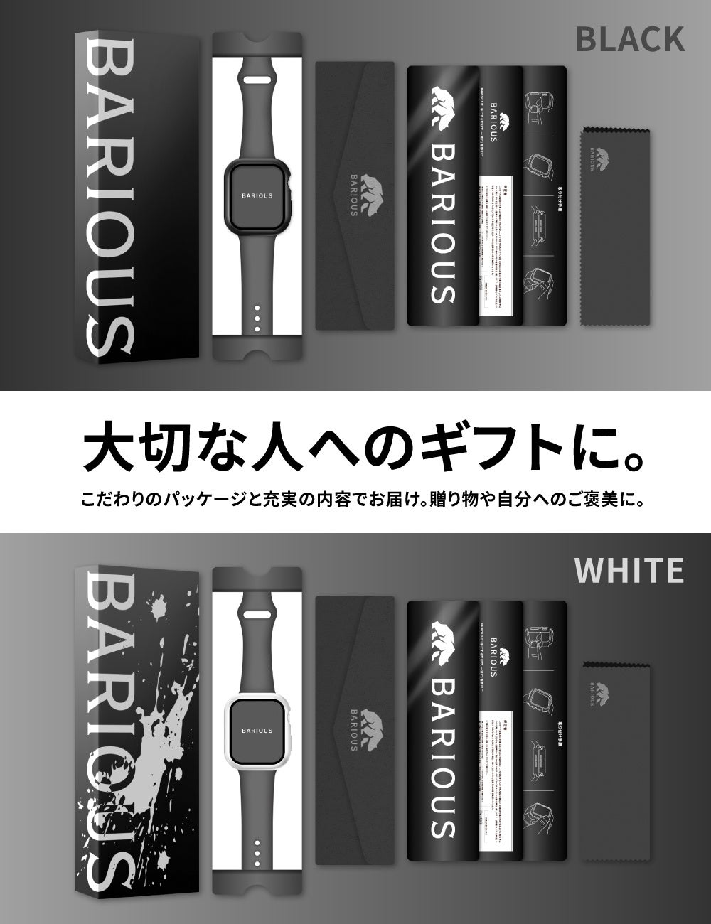 BARIOUSは「手にするだけで、一流に」をコンセプトに、商品の企画・製造・販売を行っています。これまでに、累計販売個数13万個を記録したBARIGUARD 3。 対衝撃性・耐水機能を備えた、AppleWatch Series8/7対応の41mm仕様を販売いたします。
