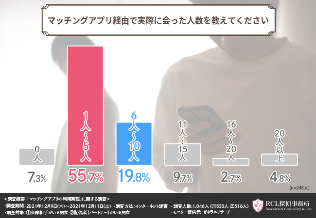 では、交際相手や配偶者(パートナー)がいてもマッチングアプリを利用していた方々は、実際に何人くらいと会っていたのでしょうか?
