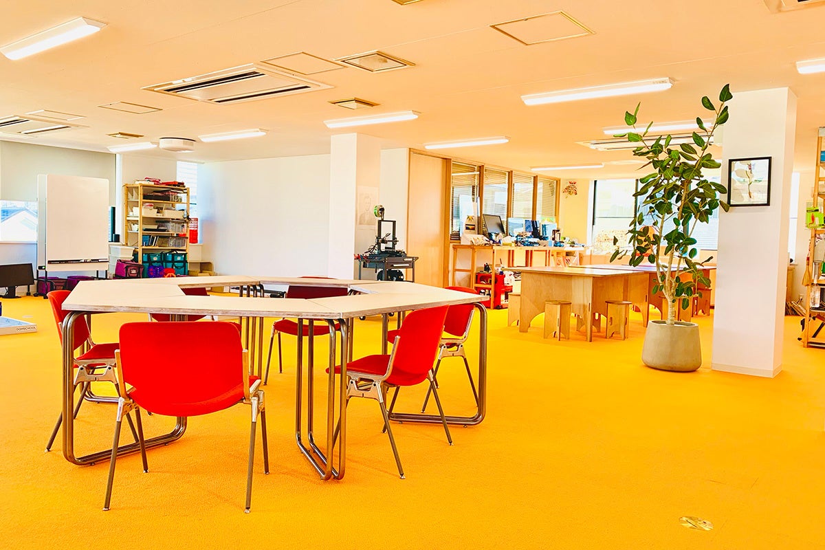 私たちがこのスクールを始める際、机にパソコンが整然と並んでいて、全体的にグレーっぽいオフィスのような雰囲気には絶対にしたくなかったんです。シリコンバレーをはじめとしたテック系の企業って、むしろプレイフルな空間づくりをしていますよね。どういう空間で学ぶかというのは、子供たちをワクワクさせる上でとても大切だと思っています。