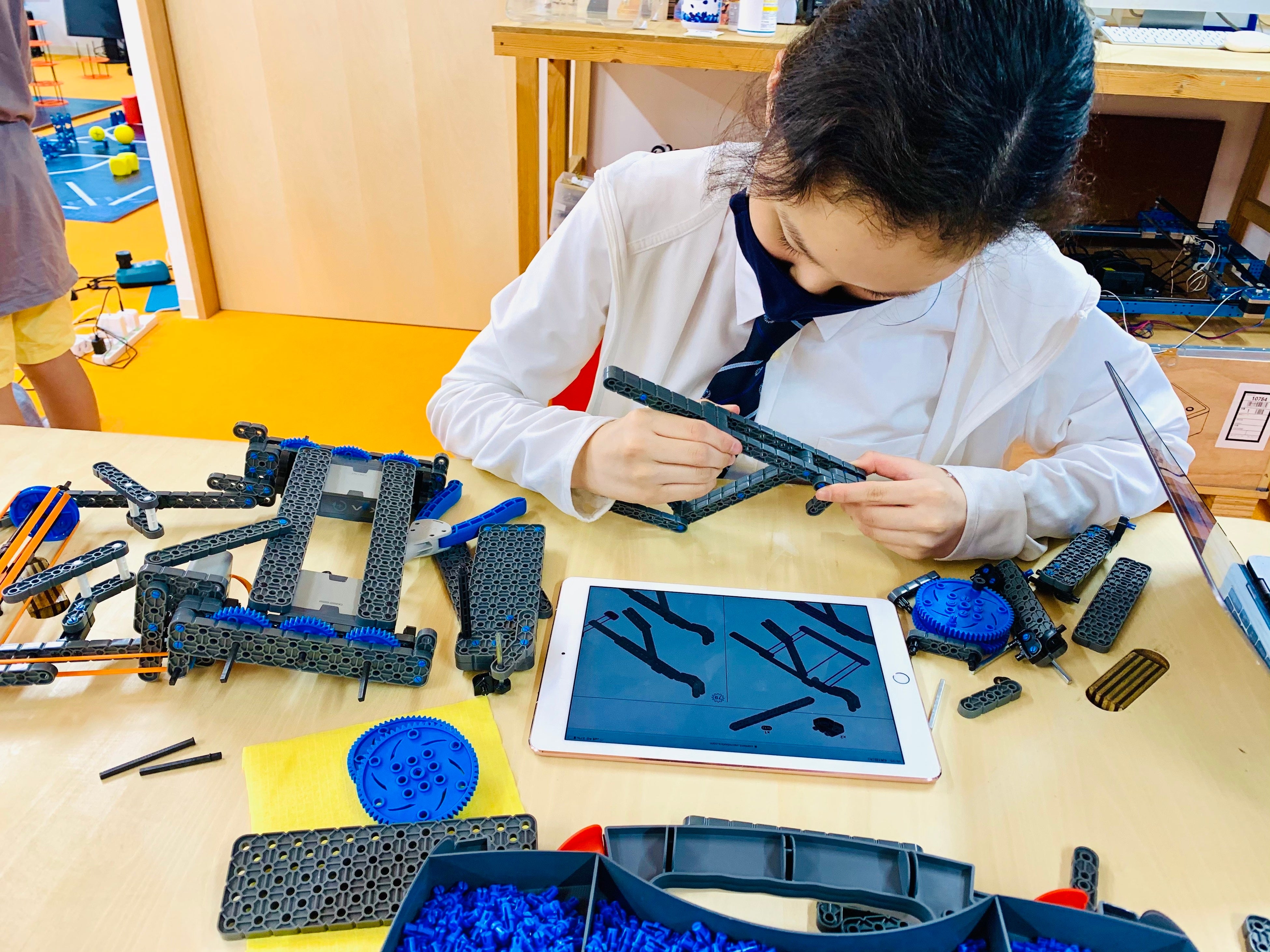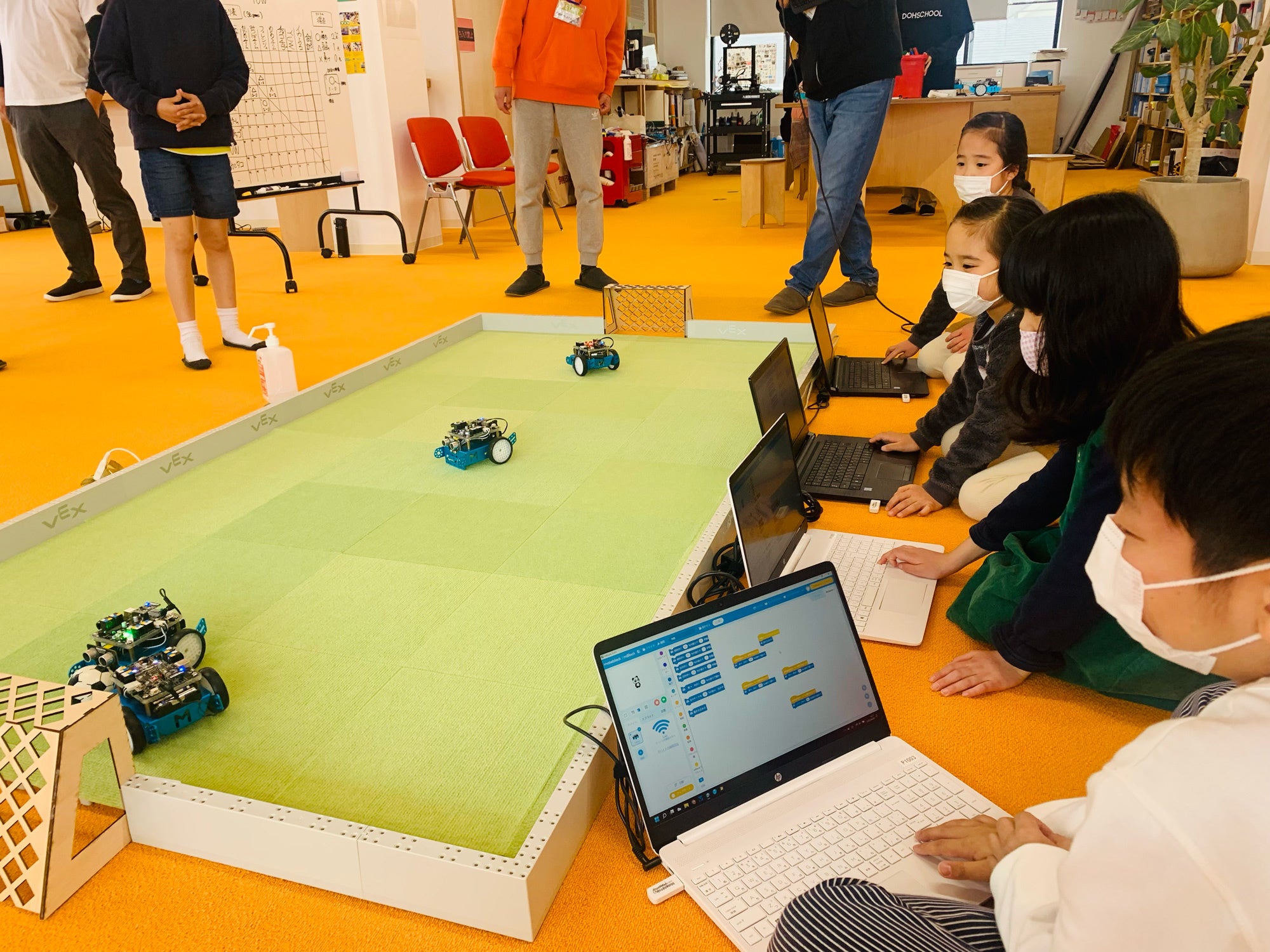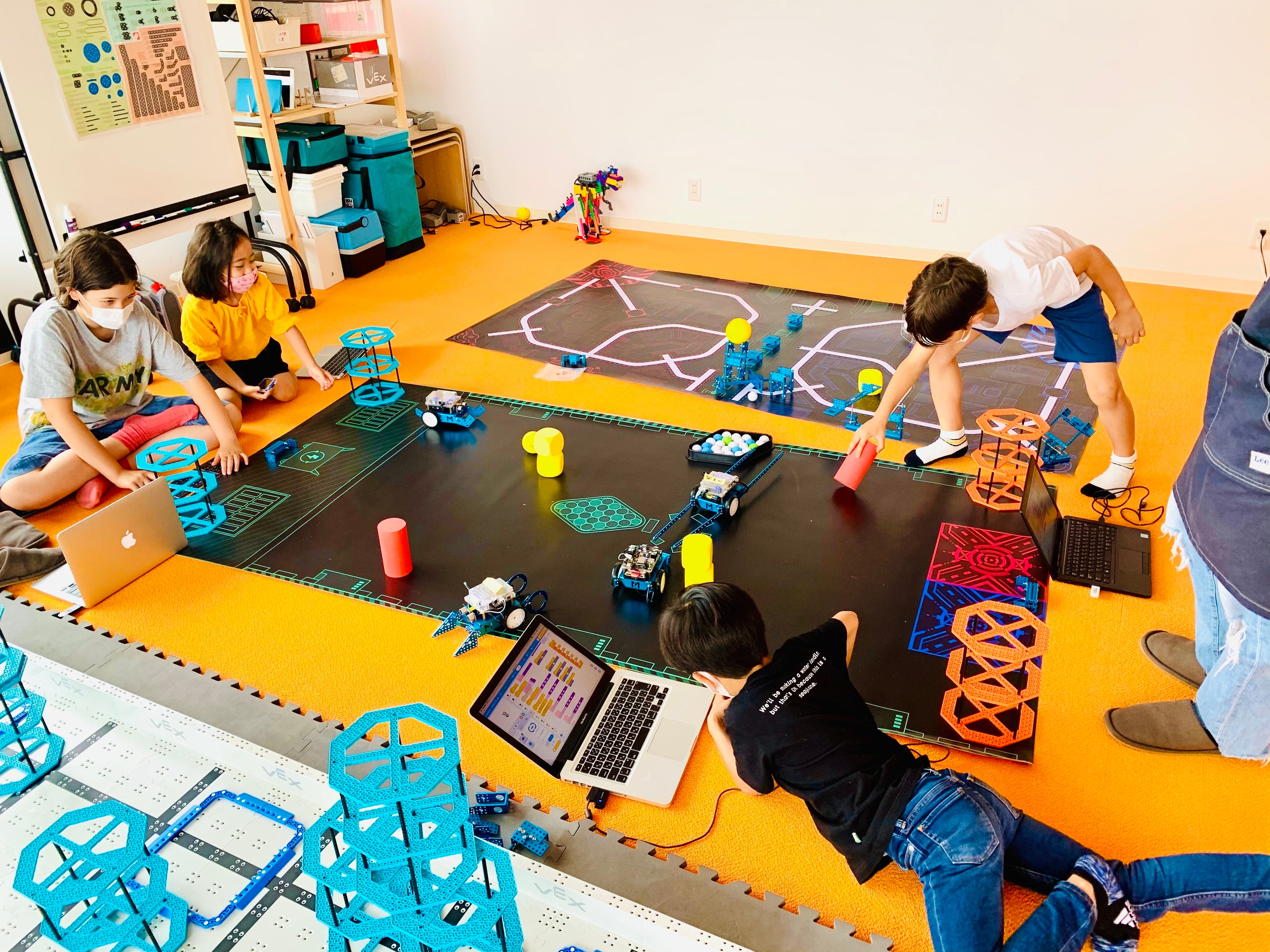 私たちが教材として使っているのは、VEXとmBotという2種類のロボットです。3ヶ月の入門コースでは、必ずこのどちらかには触れてもらうようにしています。パソコン画面の中でブロック遊びをするマインクラフトも扱っていますが、学校でも教材として使われているくらい子供には馴染みがあって人気もあるので、放っておくとみんなマイクラに流れてしまうんです。でも私たちとしては、子供時代こそ手を動かしてロボットをいじってほしいんです。