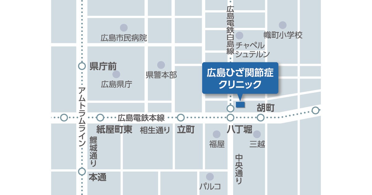 【広島電鉄八丁堀駅から徒歩1分】変形性膝関節症のための再生医療を提供しています。