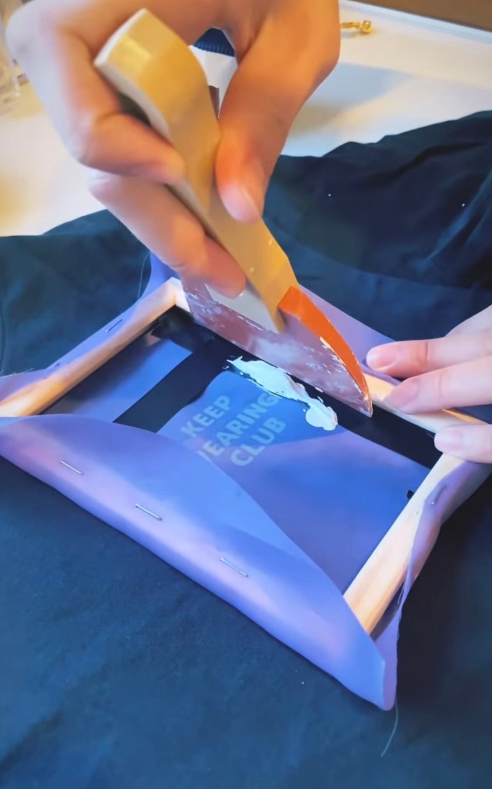 無洗百人プロジェクトではレダ社の紺色メリノウールTシャツに、オリジナルロゴを一つ一つシ手寧にシルクスクリーンを行い、皆様の元へ発送致します。
