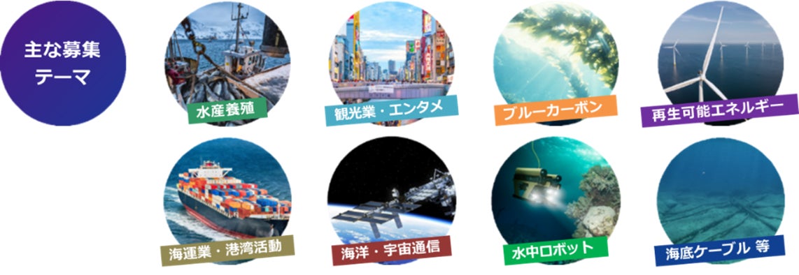 海洋デジタル社会に関連する以下の募集テーマに該当する企業・団体の皆様を幅広く募集しております。詳細は下記の参画ガイドをご覧ください。