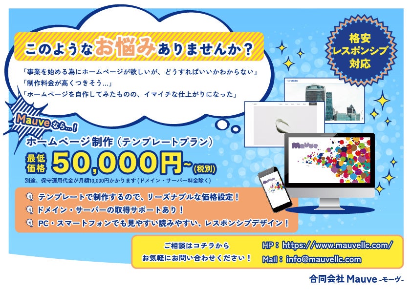 ※Mauveでは、営業ツールに役立つチラシ制作も承っております。各種サービスの詳細は弊社ホームページをご覧ください。