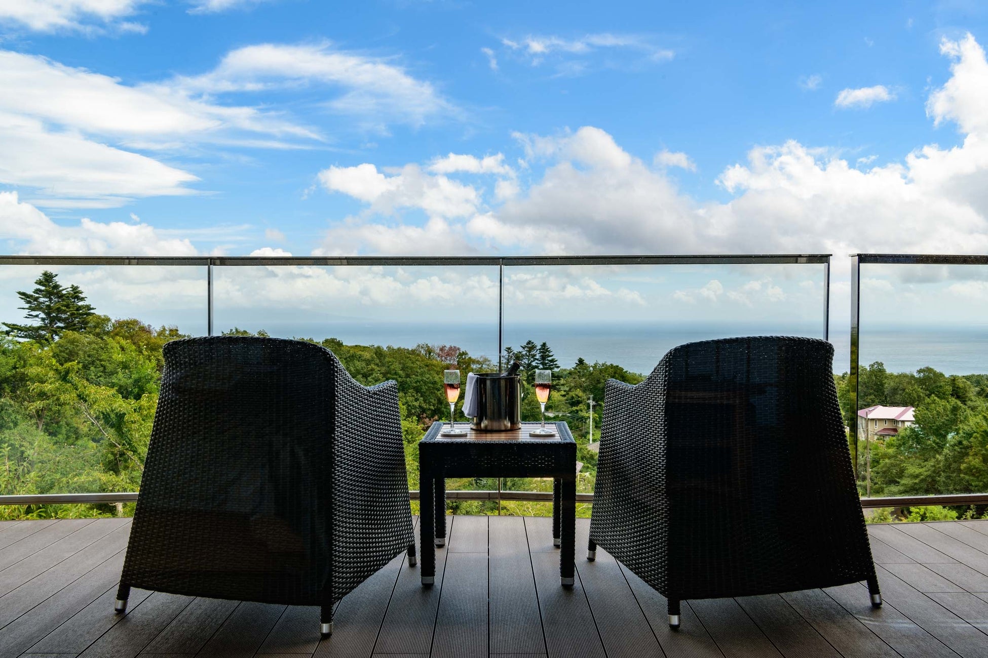 「大室の杜 玉翠」は、伊豆高原の高台から海を臨む、全9室の宿です。旅館古来の伝統 ”クラシック” と、プライベート感溢れる洗練された雰囲気”モダン” の調和を目指しています。全ての客室は、オーシャンビュー源泉かけ流し露天風呂を完備しております。そこでは、本店の創業より一世紀以上こだわり続けている、「湯守り」による温泉管理技術をご堪能いただけます。