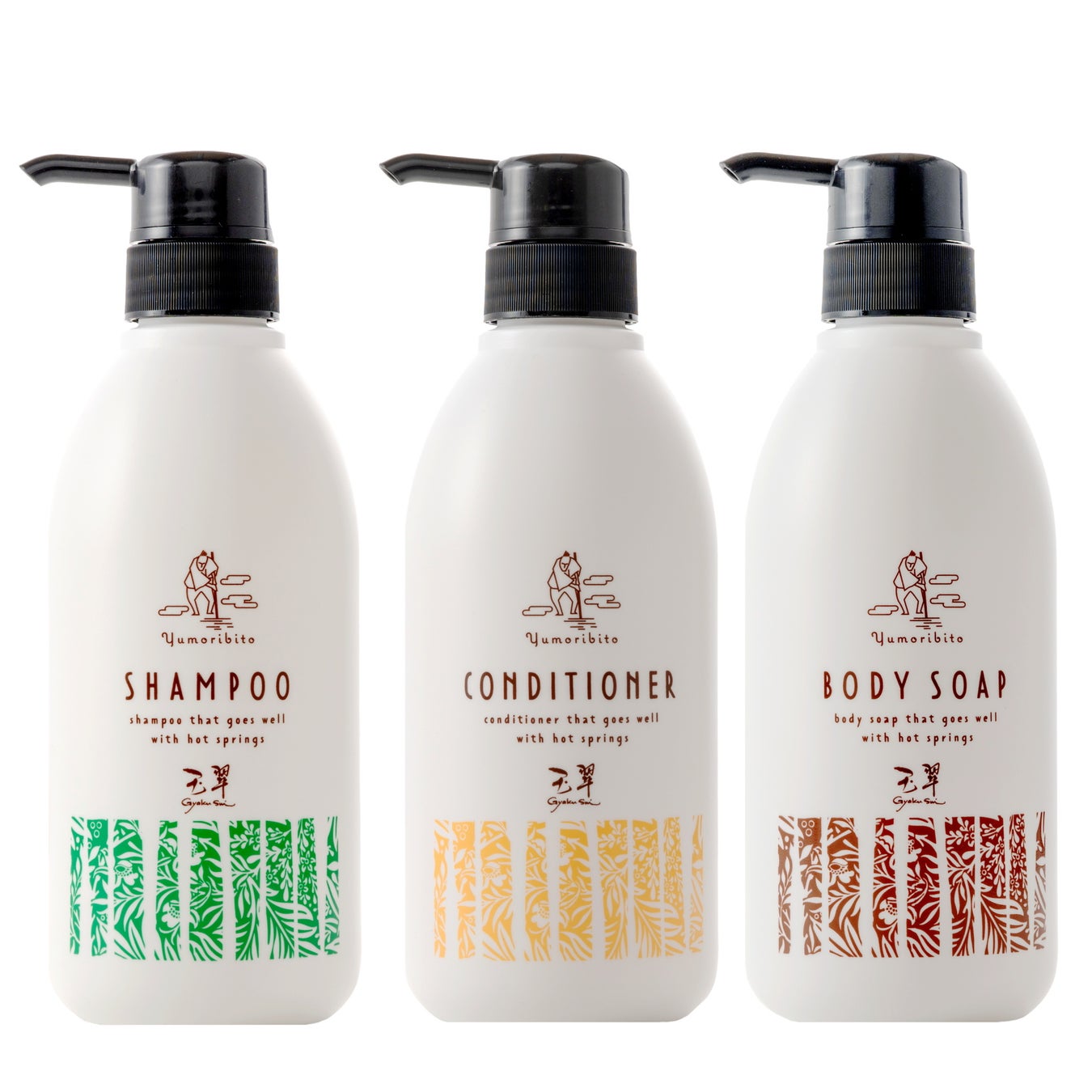 温泉に関わる新しい価値を求めてスタートしたYumoribitoプロジェクトは、インバスアメニティの開発から着手いたしました。ブランド物のインバスアメニティを準備することが、お客様に価値を提供すること。これが現在の宿泊施設のトレンドです。これも一理ありますが、お客様が本当に満足するのは、温泉とインバスアメニティが相乗効果を生んだ時であると考えます。当館は、温度管理にこだわりながら、お湯や水と肌との相性を探求し続けてきました。同じ温泉地の中でも温泉の質は異なります。そのような中、自分たちの温泉とインバスアメニティの相性を追求するには、それらを自ら開発する他ないという結論に至りました。