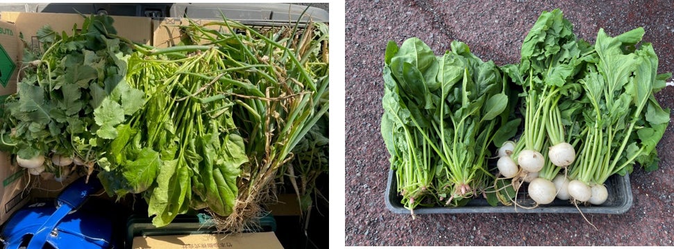②京都府舞鶴市採れたてのほうれん草やかぶを寄付