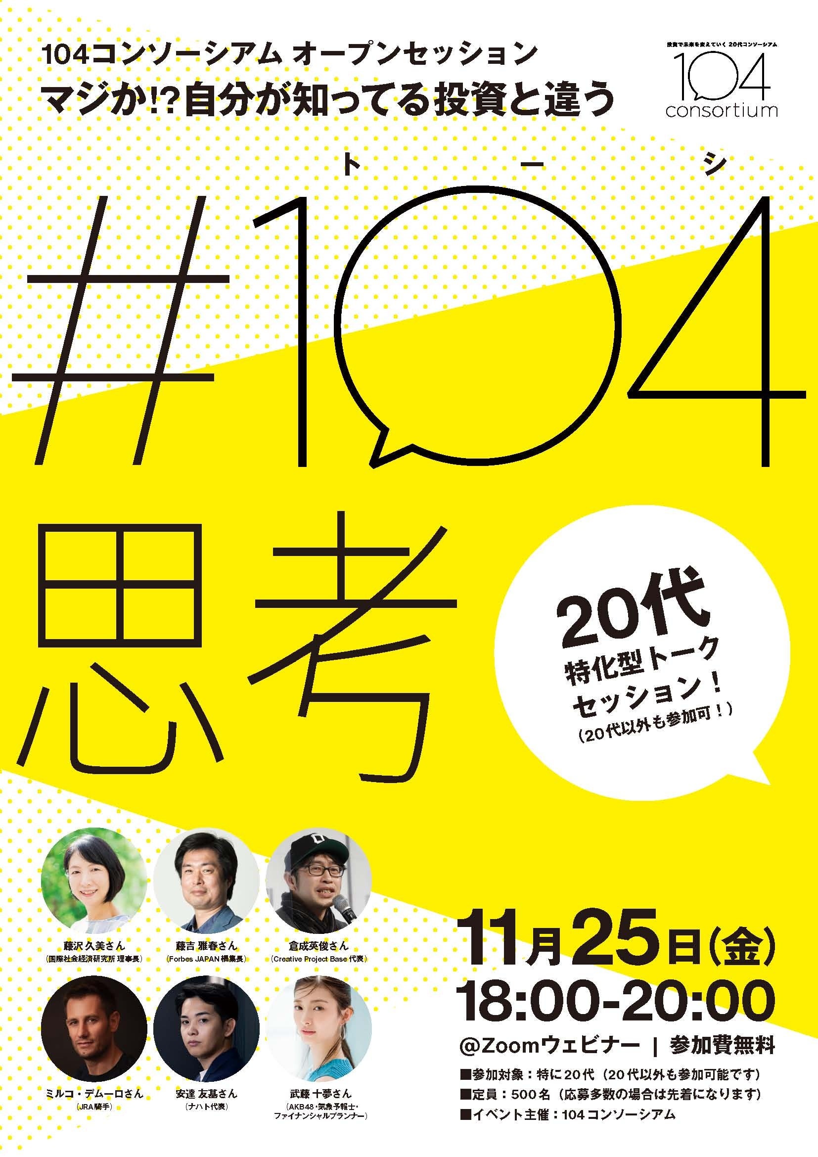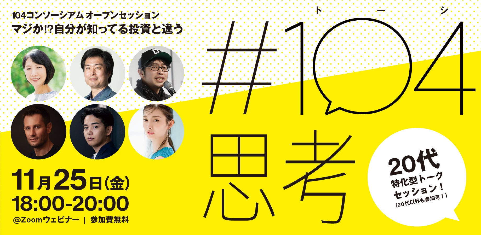 104コンソーシアム オープンセッションマジか !? 自分が知ってる投資と違う「#104(トーシ)思考」11月25日(金)ウェビナー開催