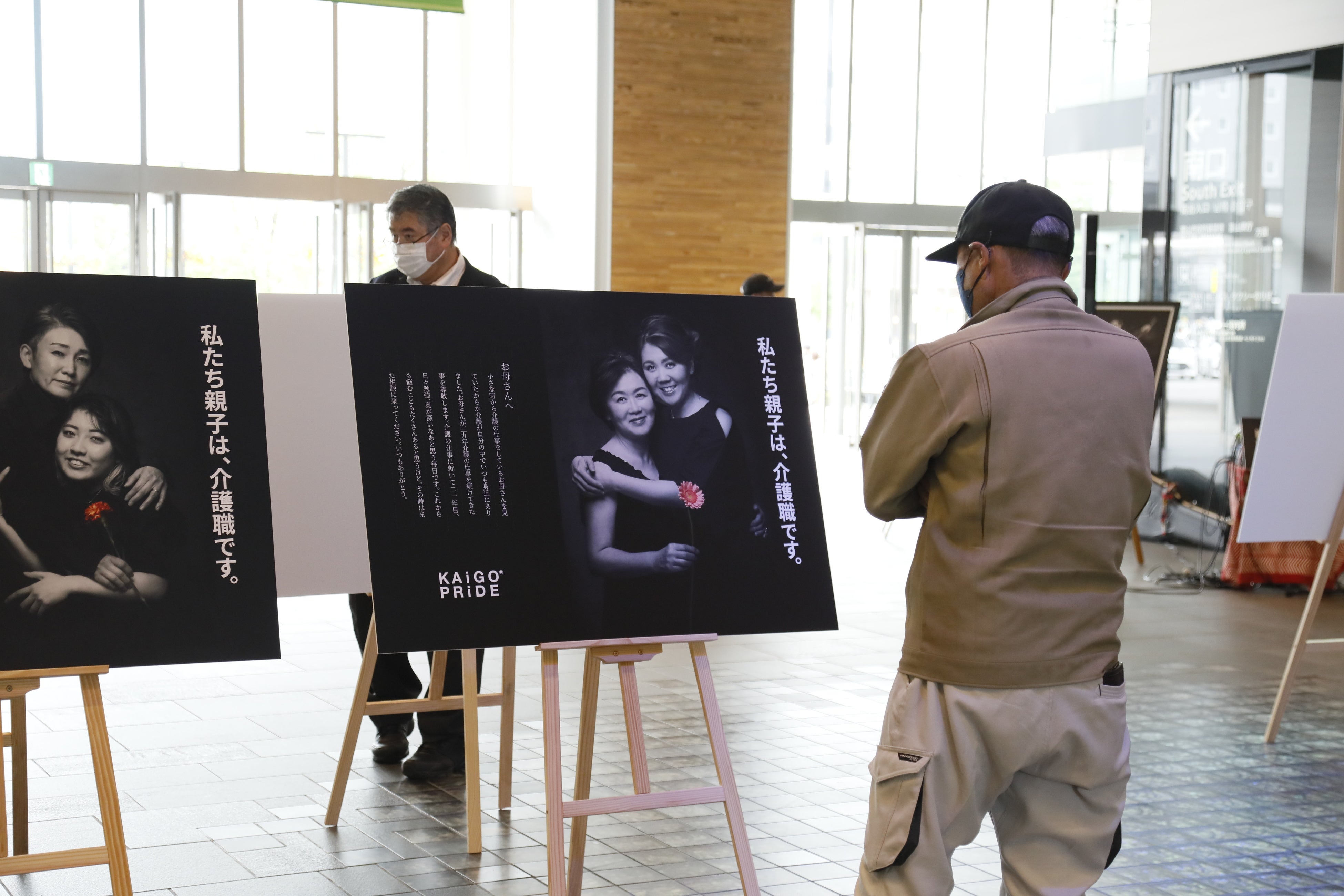 「親子でこんなん素晴らしいと思いました。暗いイメージがあったんですけど、写真に写っている人たちを見ると明るく爽やかで、かつ楽しそうな顔をしてらっしゃるので、自分が思っていた介護に対するイメージは違うんかなと思いました。」
