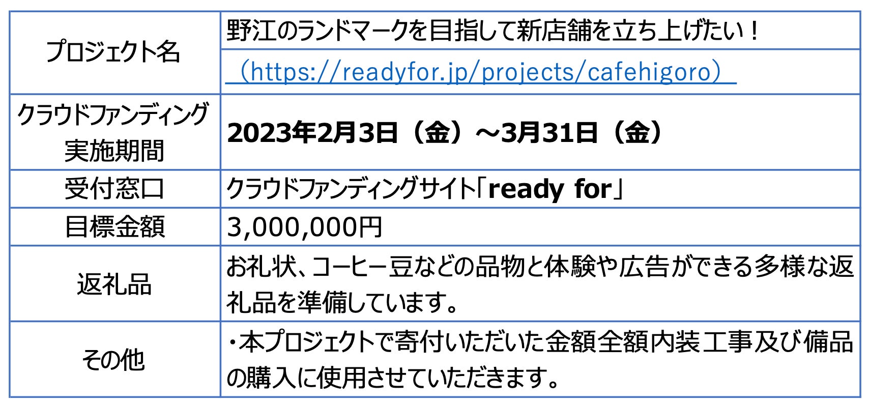 詳細はぜひプロジェクトページをご覧ください。URL: https://readyfor.jp/projects/cafehigoro