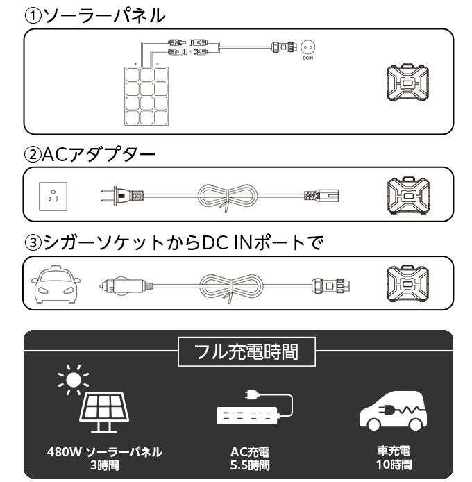 フル充電所要時間:■5.5時間(ACアダプタ充電時)