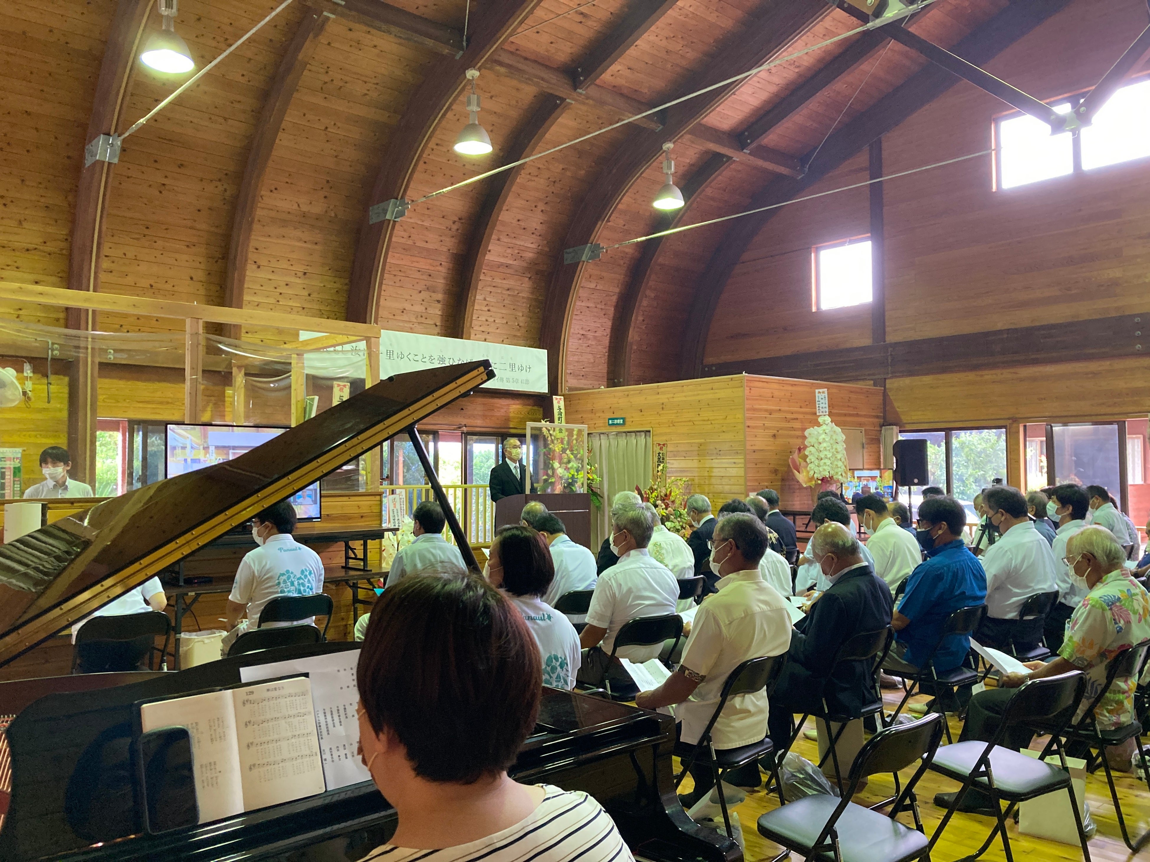 7月3日に行った開院式「祝福祭」には、悪天候にもかかわらず、診療所の再開を待ちわびた100人近い島の方々にお集まりいただきました。診療所の建物は、古川医師自らが図面を引いた、ノアの箱舟をイメージさせる木造建築です。町長、町議会議長、大島郡医師会長、与論徳洲会病院院長、そして古川医師からご祝辞をいただき、幸先のよい船出となりました。わたしたちも勉強しながら、個人としても、組織としても、この島と一緒に成長していきたい。そして、地域の課題を一緒に解決するために積極的にお手伝いをさせていただきたいと思います。