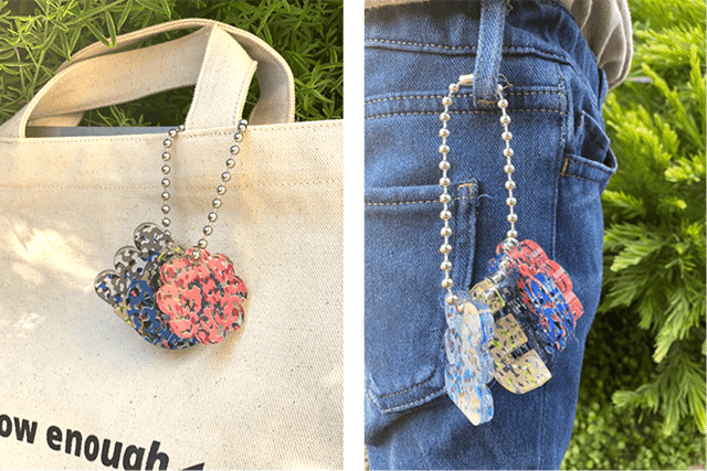 5つのかたちをボールチェーンでまとめたMIKKEは持ち運びにも便利。カバンに取り付けたり、ポケットにも入る大きさで遊びたいときにいつでも気軽に遊ぶことができます。