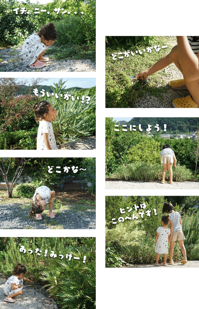 隠す人は自然をよく観察しながら、MIKKEをカモフラージュさせる。探す人は、自然の中のちょっとした違和感を見つけようと、注意深く自然を観察する。