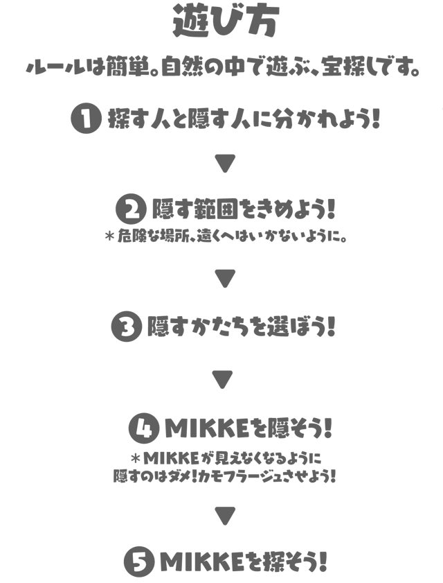 自然をモチーフにデザインされた5色のMIKKEを使って、自然の中で行う“宝探し”のようなゲームです。