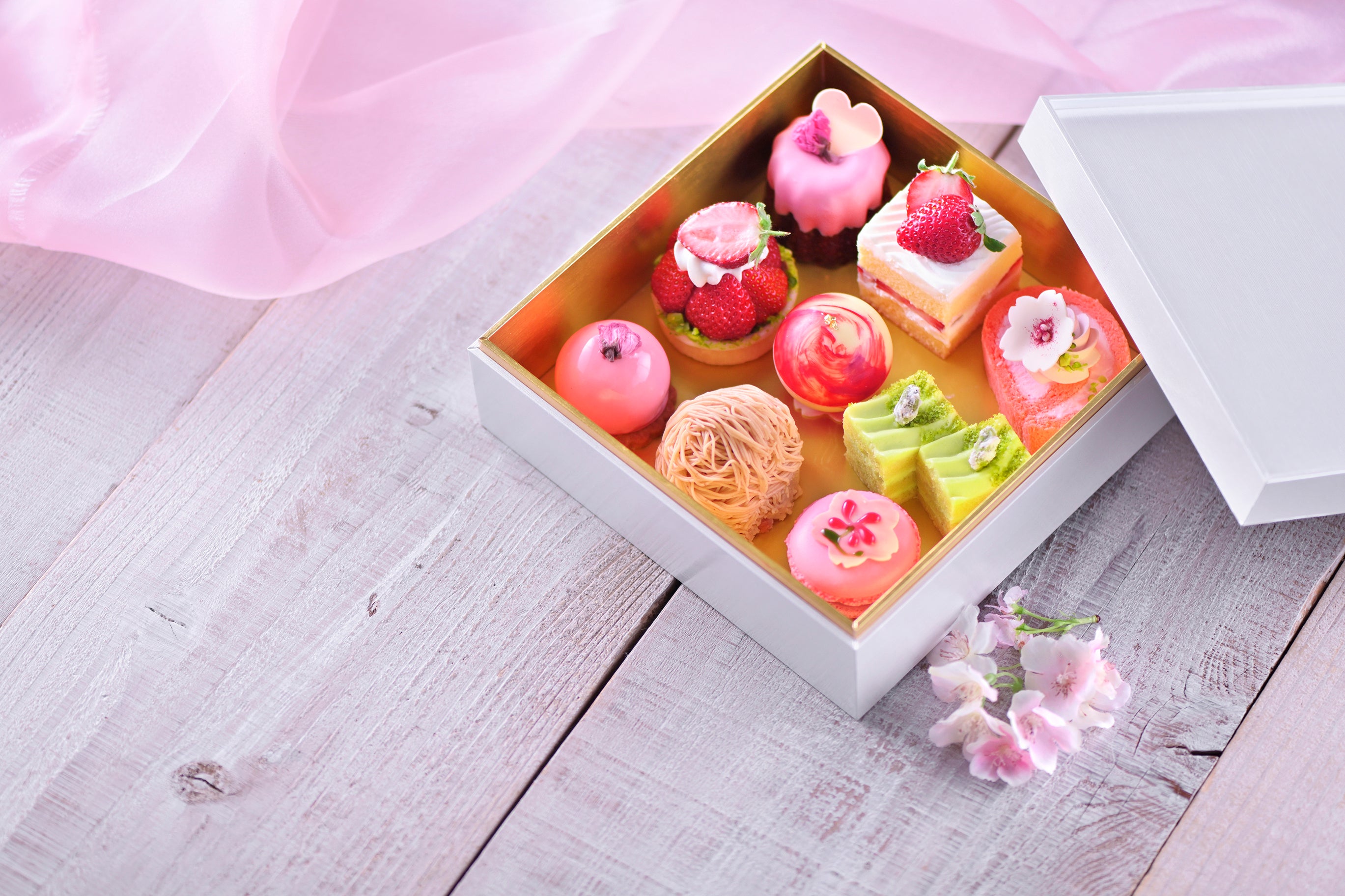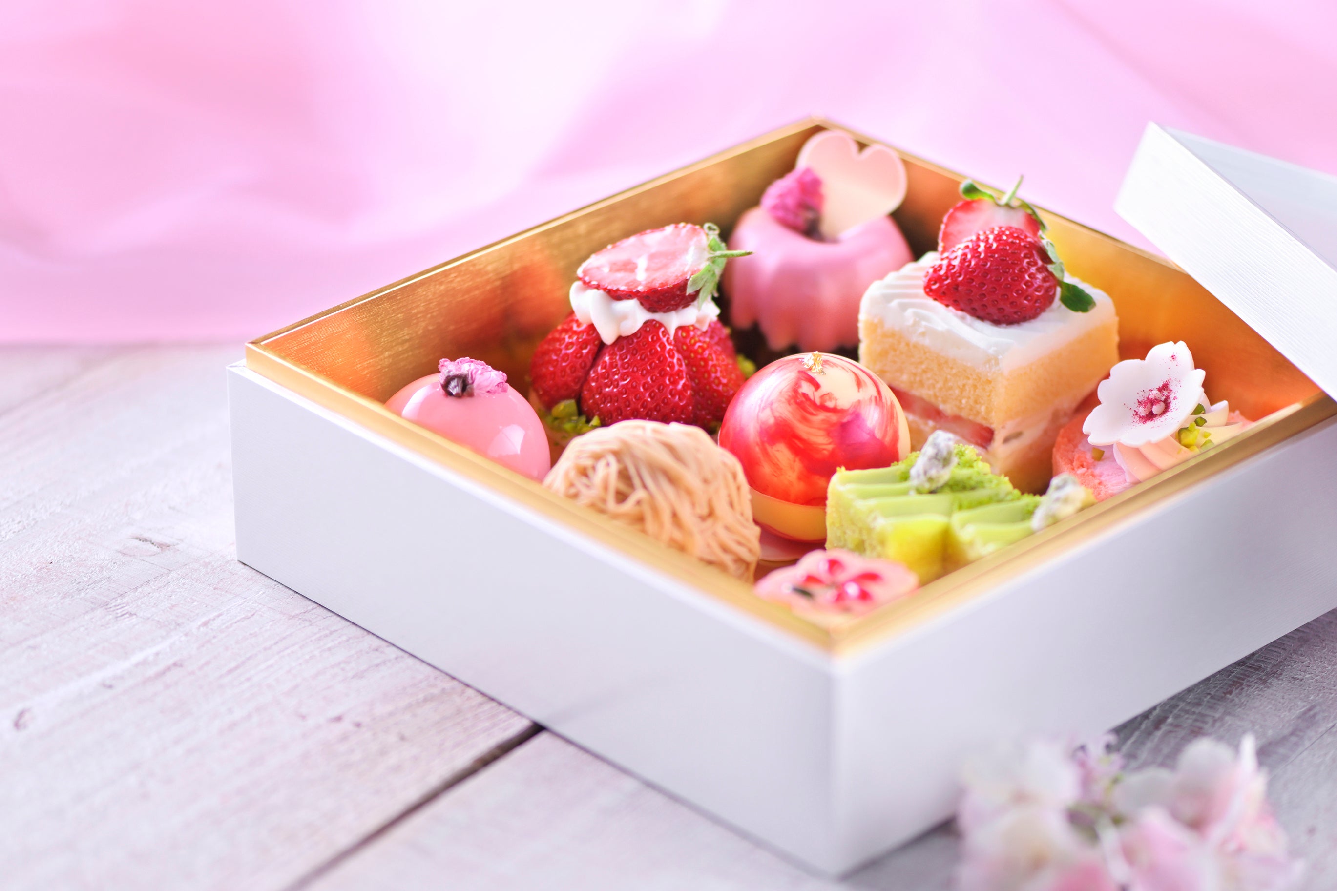 「スイーツボックス~春らんまん~」には、春の香りがふわりと漂う桜のフレーバーや、旬のいちごを楽しめる9 種類のスイーツを仕立てました。小箱を開けば、まるでお花見のように華やかで愛らしいスイーツに思わず笑顔がこぼれます。