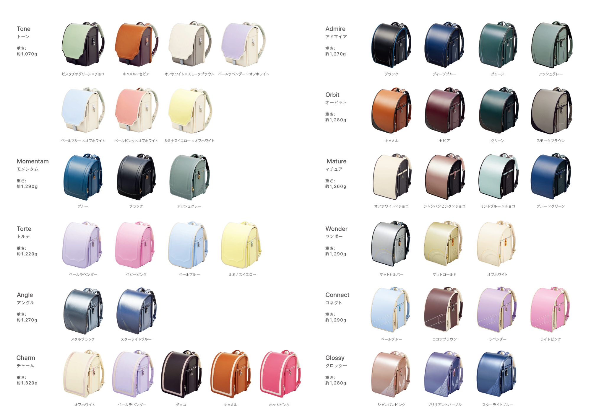 新シリーズ「Torte(トルテ)」と新カラーを加え、2025年度ご入学モデルは全11シリーズ43モデルに。