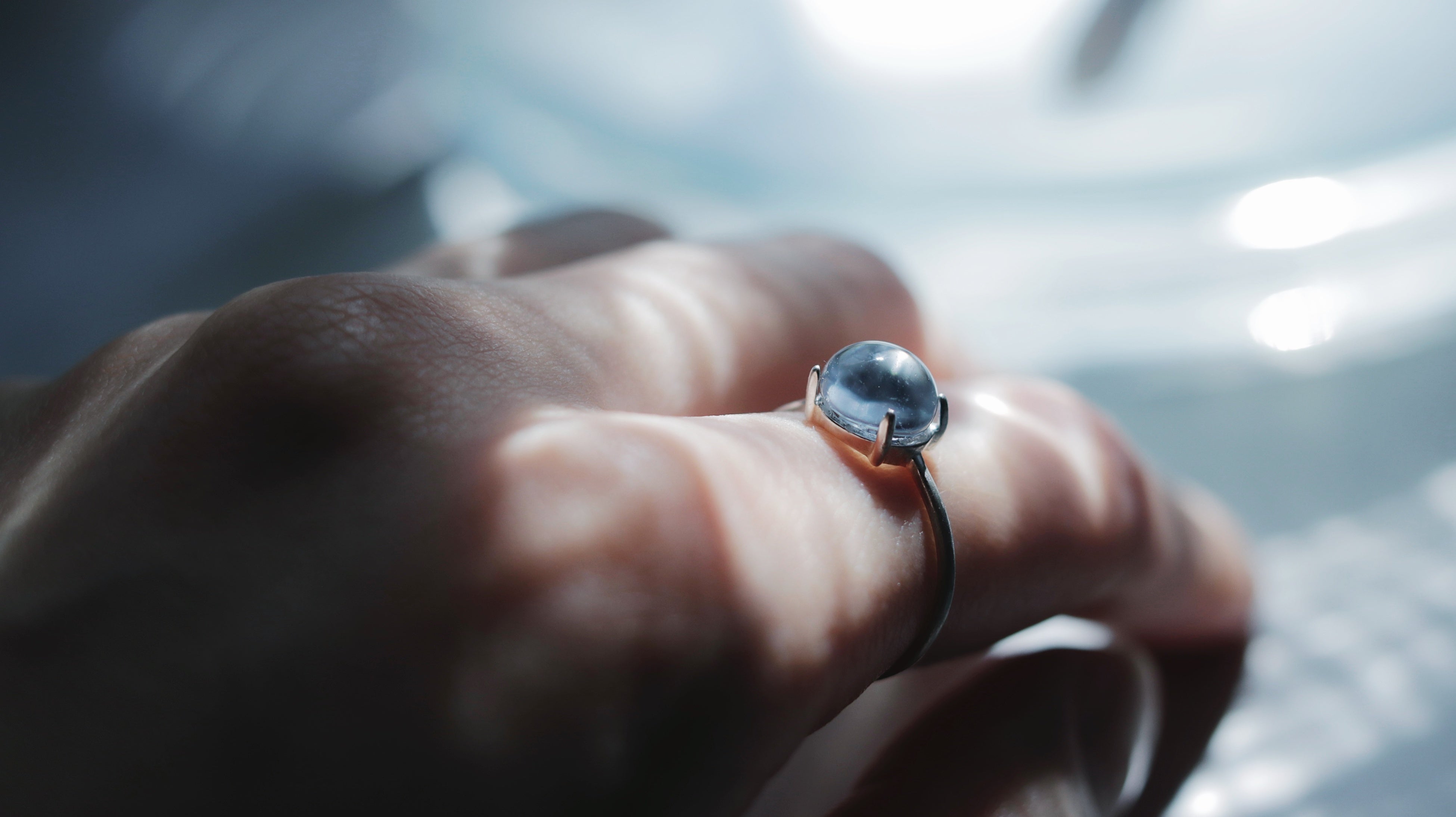 水をモチーフにしたガラスの指輪「Water crown ring」