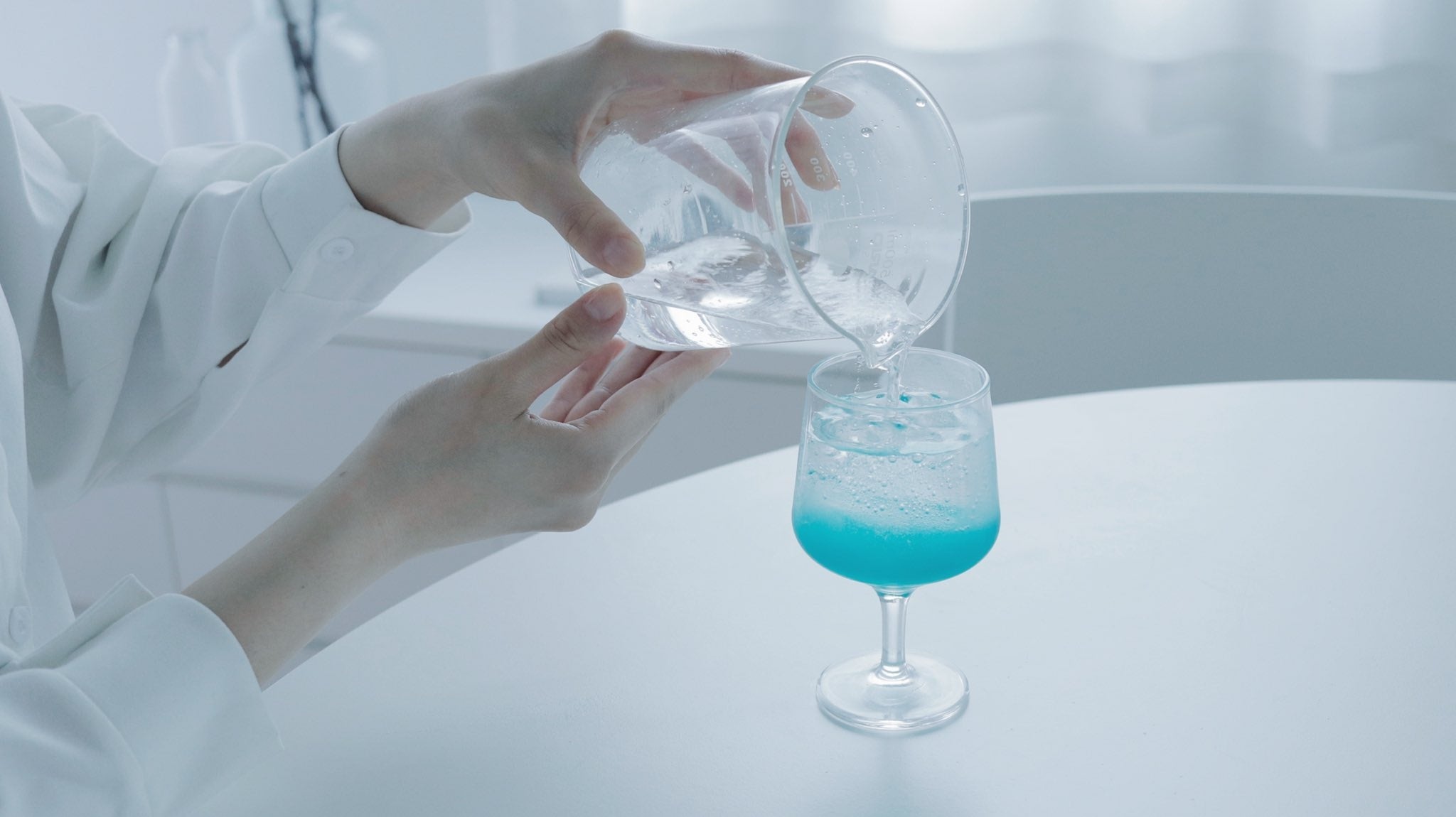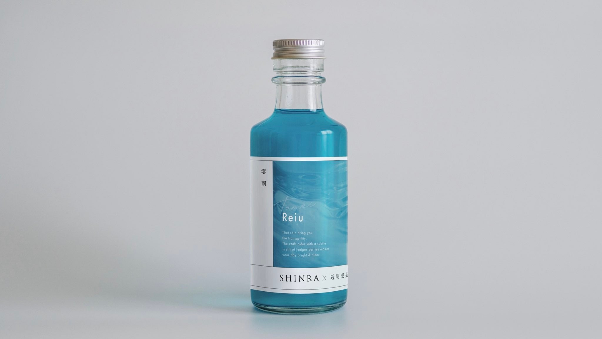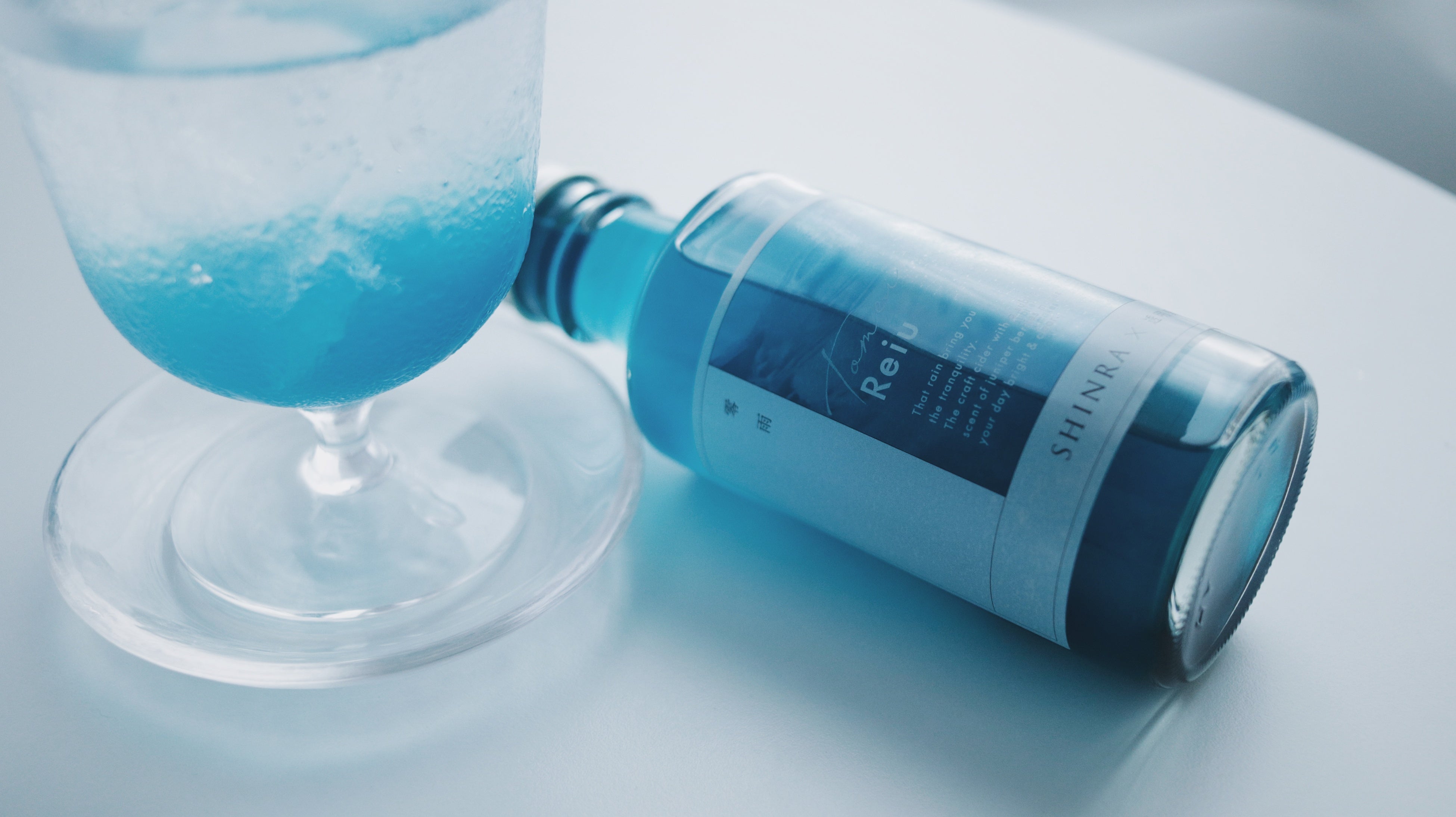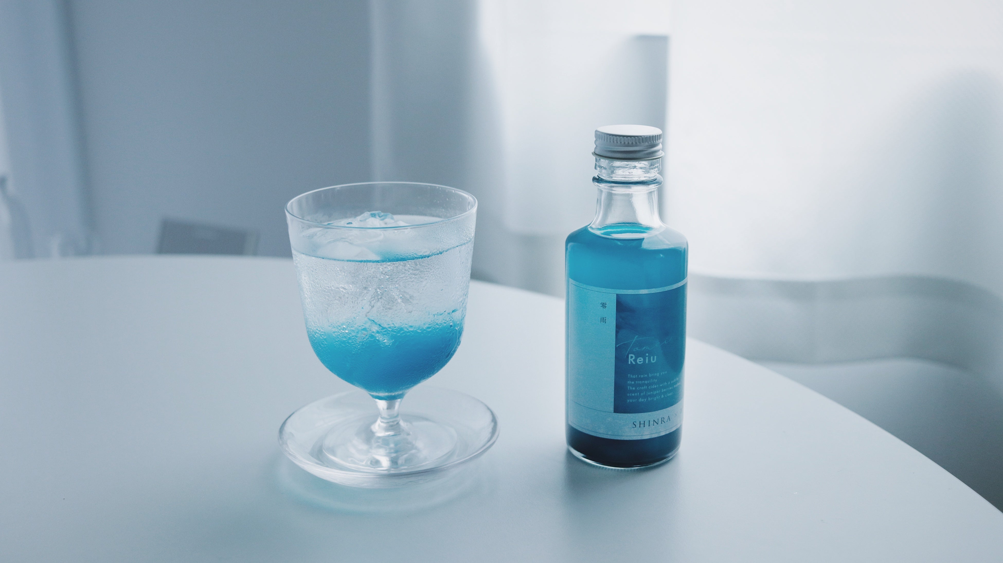 透明な液体に美しさを見出すtomei/透明愛好家と、「感性に潤いを。」というミッションを掲げ、一人ひとりが五感を大切に心の機微を味わってほしいと願うSHINRA。2022年、両者がお互いのコンセプトに共感し、作品を共に創り上げるように、青く透明なハーバルソーダシロップ「Reiu 零雨」を開発しました。