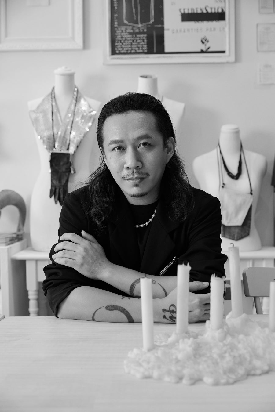 2020年にVogue Italia「Best of Talents」 に選出された台湾発 ブランド「JUSTIN XX」 デザイナー Justin, Yu-Ying Chou(ジャステンユイン・チョウ) 。同じく台湾出身で野流着装奥伝講師/ 民族衣裳文化普及協会指導師範の“着物王子”こと洪宇辰とのコラボ制作。「FASHION PRIZE OF TOKYO 2025」受賞、「ssstein」デザイナー浅川喜一郎。同じく「FASHION PRIZE OF TOKYO 2026」受賞、「YOKE」デザイナー寺田典夫。在学中に「装苑賞」受賞後、数々のブランドの立ち上げに関わり、現職のデザイナーとしても活躍するサトウエミコは自身の新たなブランド「KNITPOTTERY」で参加。東京藝術大学大学院デザイン科卒業、ジュエリーやシャンデリアなど、透明なビジュアルの作品制作を行う、プロダクトデザイナー中村暖です。
