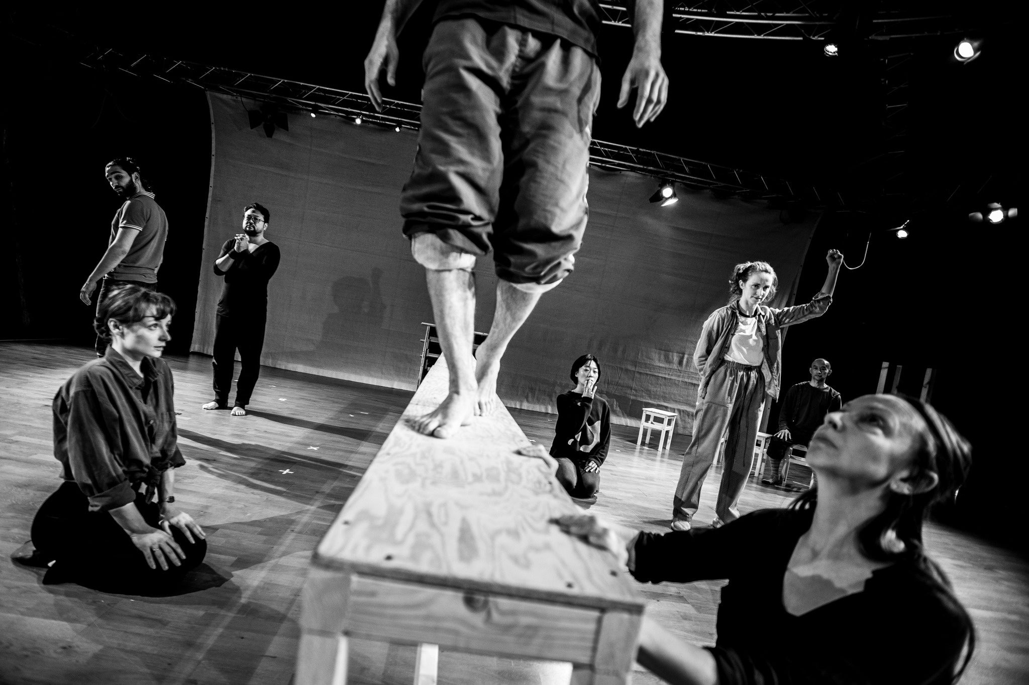 2022年9月、企画が実現に向かい、本公演の出演者オーディションをグロトフスキ研究所主催で行いました。オーディションには90名の応募があり、書類選考で20名に絞られ、最終選考者は5名。日本からは小池が選考した3名のパフォーマーが参加。音楽家には、ポーランドの現代ジャズシーンで著名なアルトクラリネット奏者のヴァツワフ・ジンペルが選ばれ、照明チームはグロトフスキ研究所のディレクターでもある演出家、ヤロスワフ・フレットが率います。