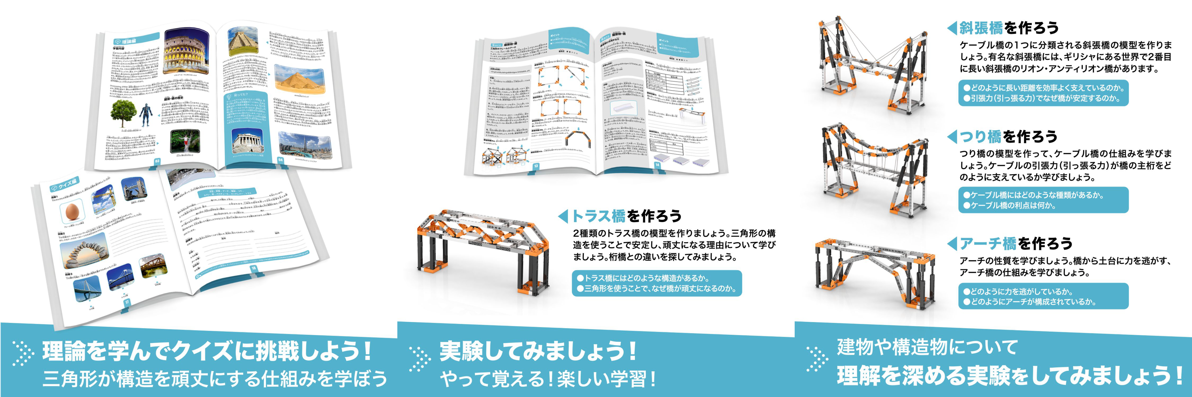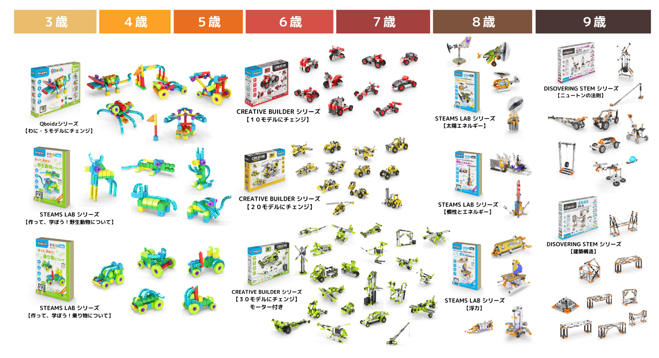 ・少ないパーツでたくさんのモデルを作れるため、創造力の基礎から応用までの力が身に付く