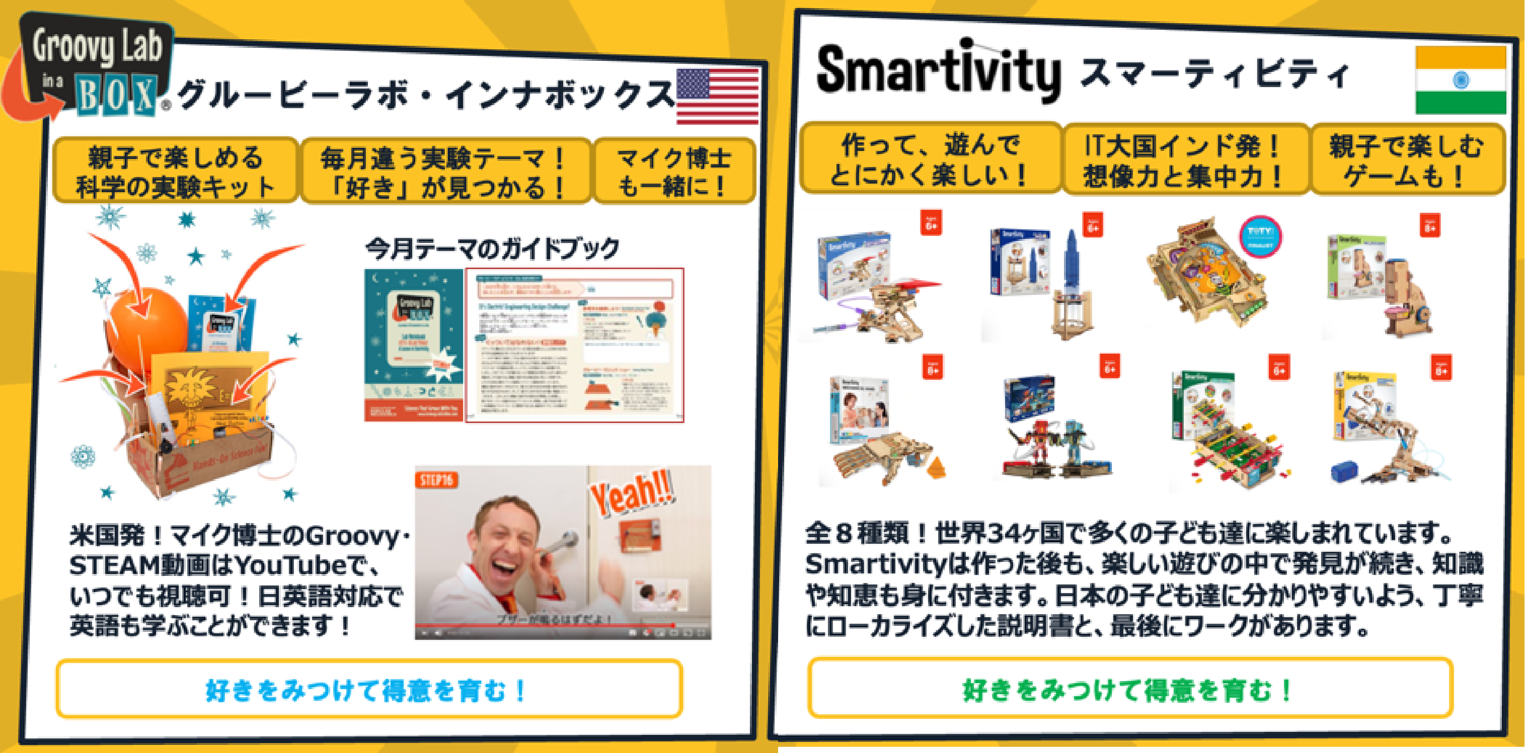 当社は世界のすぐれたSTEAMトイを日本の子どもたちとそのご家族にお届けするために知育おもちゃを輸入販売し、より親しみを持って遊んだり、分かりやすく学ぶために、自社オリジナル知育コンテンツの開発提供をしている会社です。私たちのお仕事は、「Wow(ワォ)!」や思わず引き込まれる面白さが詰まった世界の優良な知育おもちゃと、動画を観ながら一緒に作って楽しめるサービスを、日本の子ども達と保護者の皆さまに安全にお届けし、子ども達の健やかな成長に役立つことです。