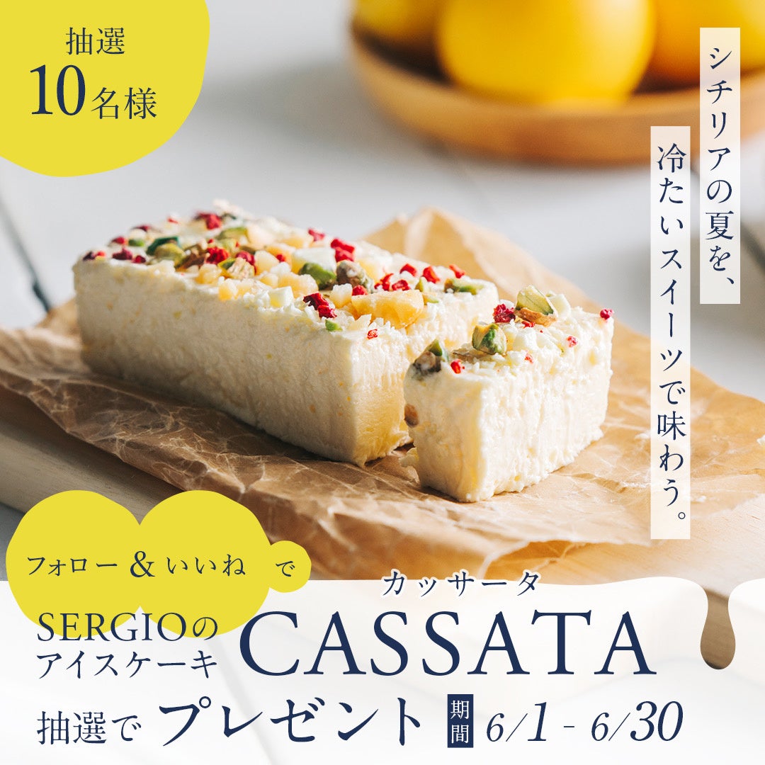 また、今回は発売を記念し、6月1日(水)~6月30日(月)までの期間、Sergioのインスタグラムアカウントのフォロー&いいねを頂くと抽選で『SERGIOのカッサータ』が当たるインスタグラムプレゼントキャンペーンを開催いたします。