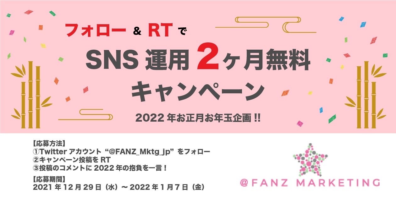 2社限定!SNS運用2ヶ月無料キャンペーン!株式会社アットファンズ・マーケティング、2022年お年玉企画を期間限定で開催!