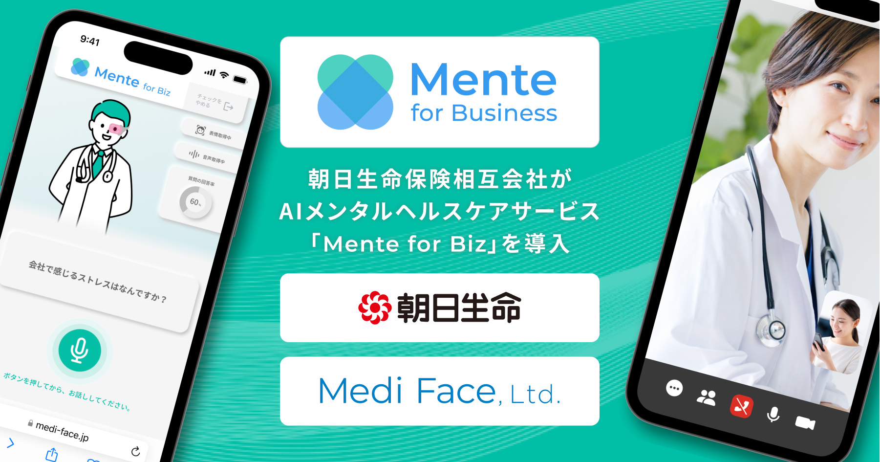 人的資本が重要視される昨今、従業員の身体的な健康だけでなく心の健康にまでケアを行き渡らせたい、という企業様が増えています。朝日生命様も従来のケアだけではなく、新しい取り組みを行なっていきたい、という先進的な企業様の一つです。取り分け、産業医面談やストレスチェックという従来の手法だけでは、「早期のメンタル不調者の発見が難しい」「その後の適切なフォローに困ってしまう」というお声は、他のお客様からも多く頂いておりました。当社は、「Yes/Noだけで答えるような簡素なチェックではなく、エビデンスに基づいたメンタルチェック」を提供するべく、現役医師らの監修の元で「AIメンタルチェック」を開発しました。これに加え、健康管理のプロによる面談・カウンセリング対応などをセットにした「Mente for Biz」というパッケージとして、朝日生命保険相互会社様にご活用いただく運びとなりました。AIによるメンタルチェックで、メンタルの相談に対する心理的ハードルを下げ、より多くの働く皆さんのメンタルの悩みを解消できるように、これからも邁進して参ります。