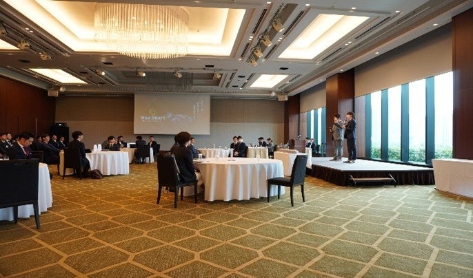 M&A仲介事業者及び、M&A仲介事業を展開する企業様を誘致して行われる中途採用イベントです。本イベントの採用手法には、スポーツ業界ではメジャーな獲得方法であるドラフト方式にインスパイアを受けた新しい採用手法「DRAFT RECRUTING※1」を適用しました。M&A業界を横断して行われる採用イベントとしては初開催であったものの、M&A業界主要企業7社に参加いただきました。また、総勢450名の応募の中から一次予選会(御茶ノ水トライエッジカンファレンス)を2023年5月に行い、6月に勝ち進んだ選りすぐりの43名で本選会(東京国際フォーラム)を行いました。そして、2023年6月23日(金)に本選会を勝ち抜いた28名によるドラフト会議を東京會舘 ロイヤルルームで開催しました。ドラフト会議では、28名の候補者様が参加いただいたM&A企業からのドラフト指名を受け、第一回「M&A DRAFT」は幕を閉じました。