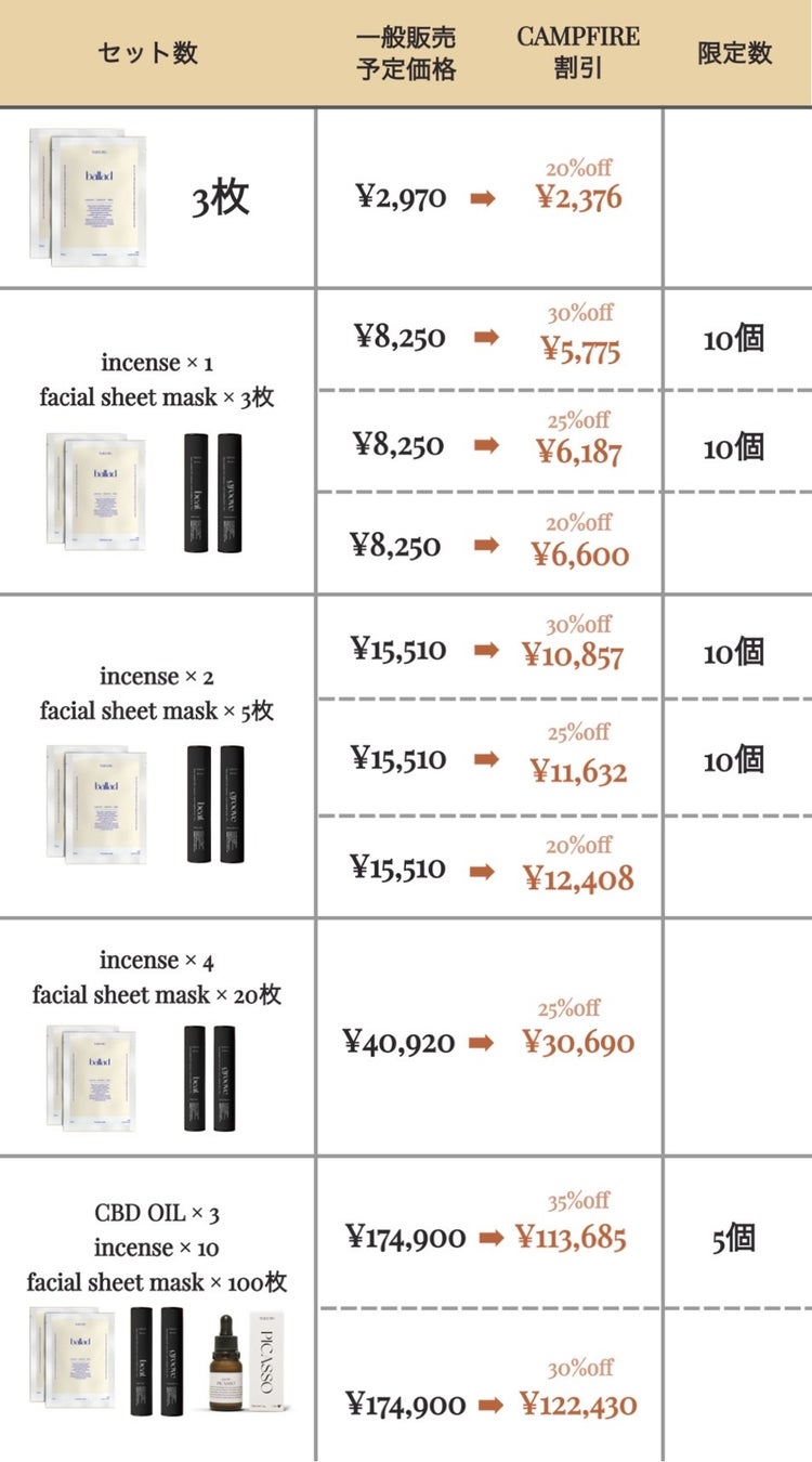 この度WillowはCBD成分を配合したFacial sheet maskとIncense(お香)2種類を10月●●日からCampfireにて特別価格にて先行予約を開始します。商品は2023年1月中旬~2月初旬にかけてお届けします。