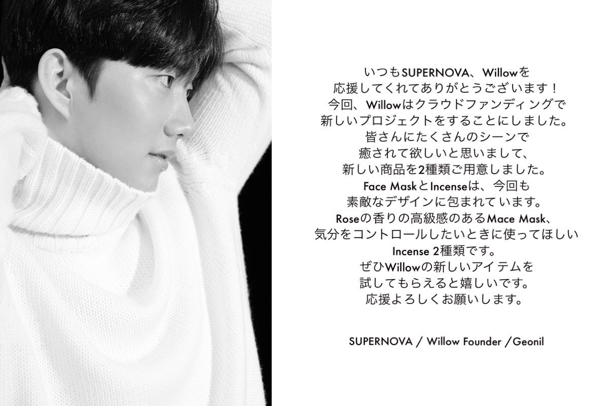 SUPERNOVA(超新星)のゴニルが監修するブランド「Willow」から、Facial sheet maskとIncense(お香)が新発売!