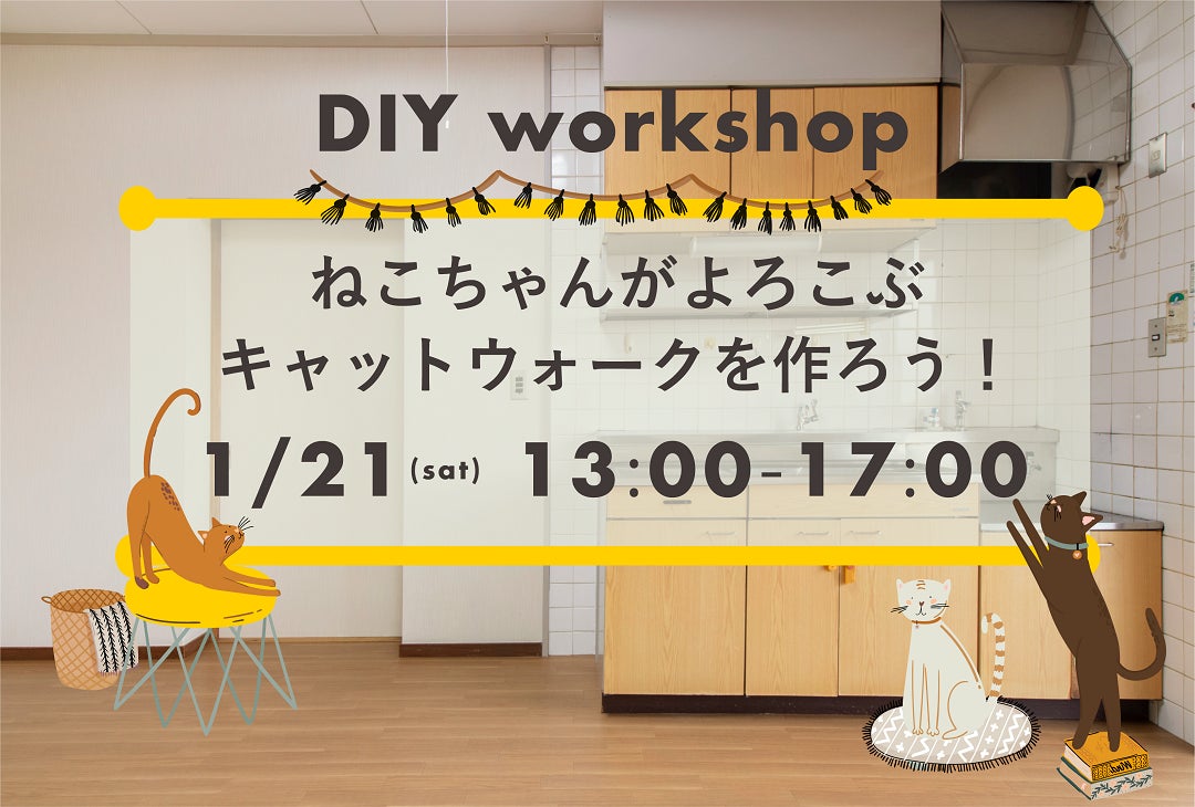 そこで、人間だけでなくねこちゃんにも快適にシェアルームで過ごしてもらえるよう、キャットウォーク・キャットステップを設置するリノベーションワークショップをおこないます!
