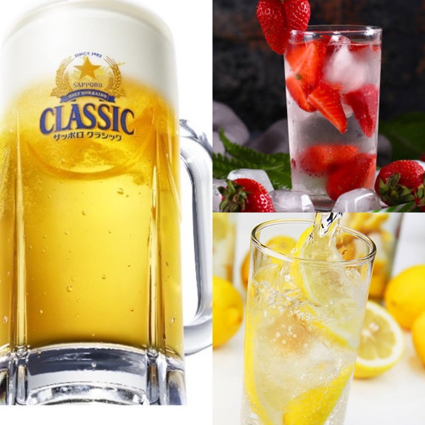 ドリンクは、キンキンに冷えた冷凍ジョッキで提供するサッポロクラシック樽生ビールをはじめ、当社ソムリエが厳選したワインや道内蒸留所や醸造所のウイスキーやクラフトジン、日本酒、フルーツをふんだんに使ったサワー等、様々なニーズに対応できるラインナップをご用意しております。