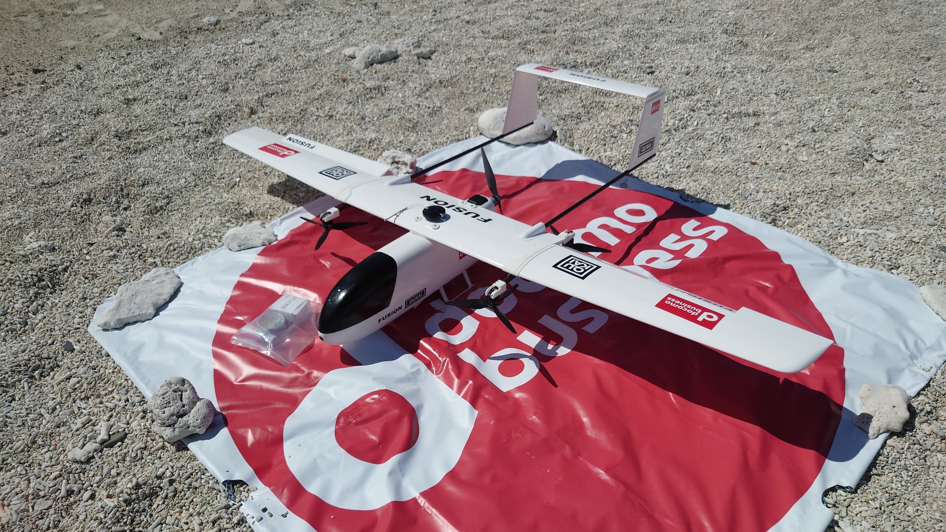 空解とNTTドコモ VTOLドローンで沖縄本島から座間味村へ約40km NTTドコモ高精度測位を利用し離島への輸送実証実験に成功