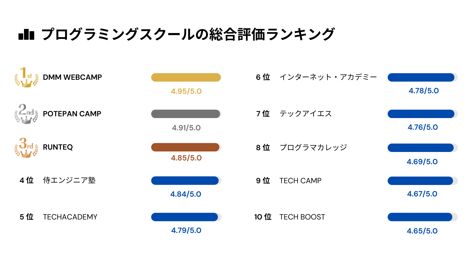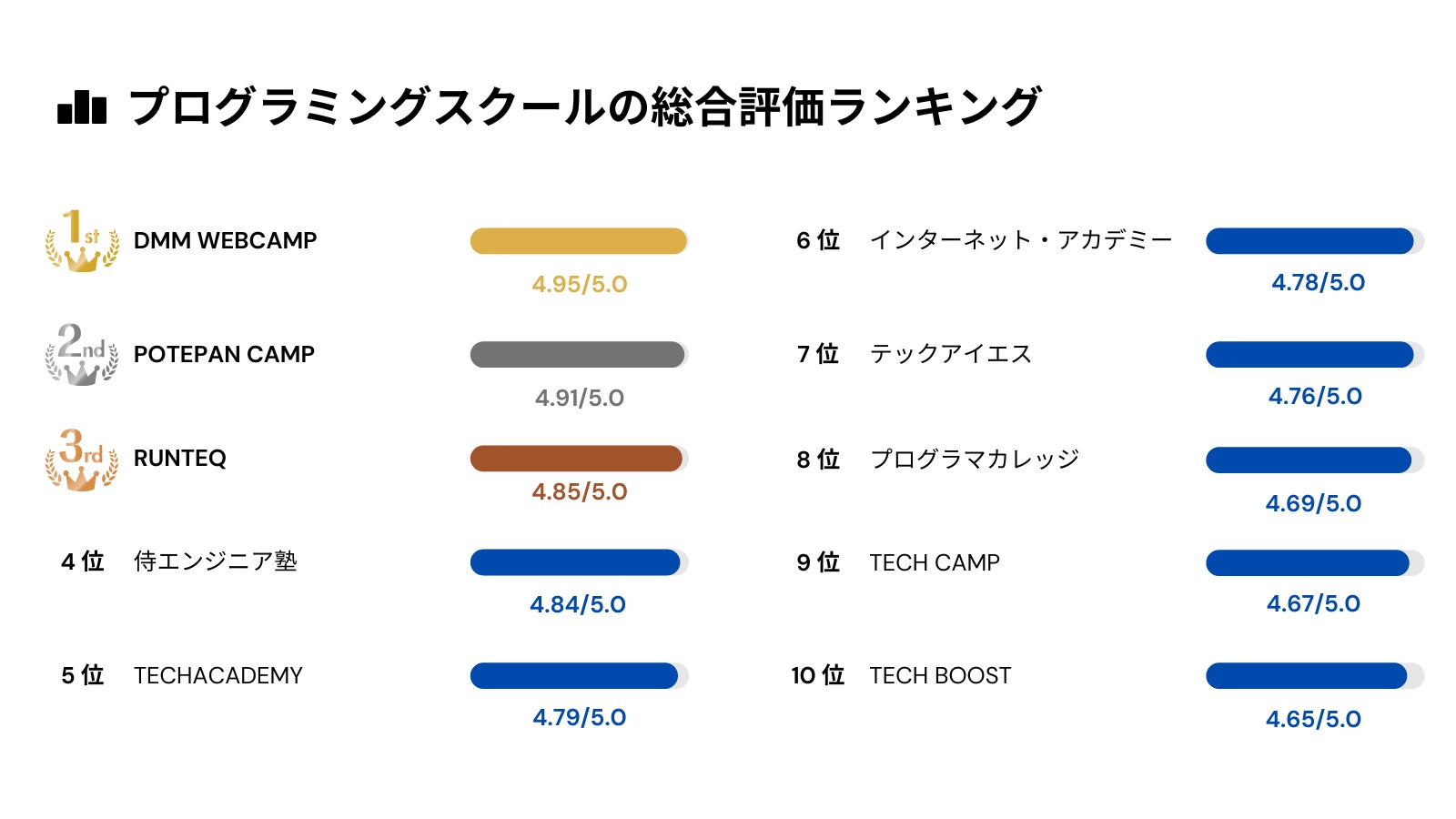 プログラミングスクールの総合評価ランキングを発表【受講料金やキャリアサポートを徹底比較】
